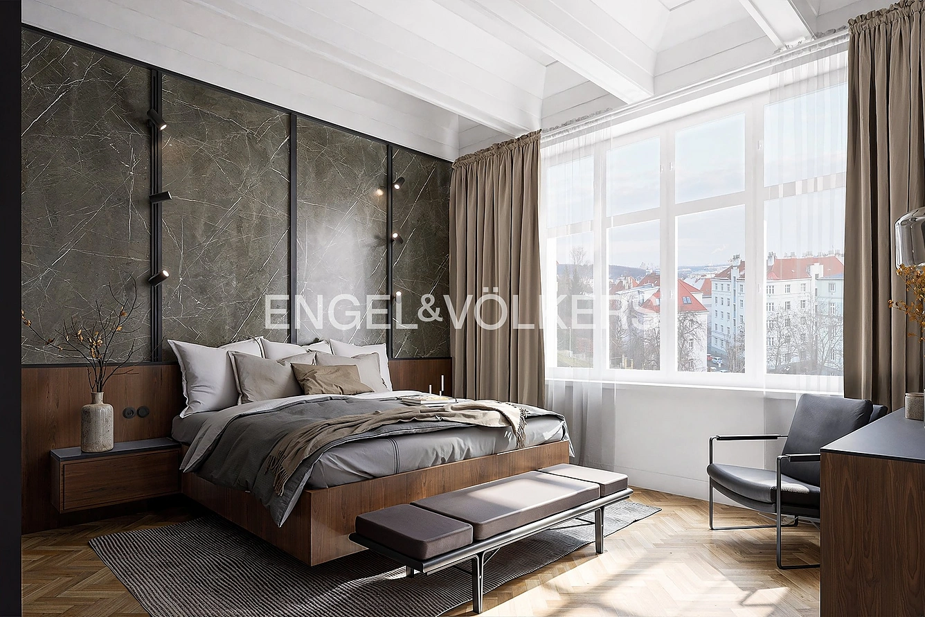 Objevte dobové kouzlo rezidenční Vily Na Stráži, která vrací život rodinnému sídlu významného českého architekta a stavitele Čestmíra Vavrouše. Osm prémiových bytů přináší stylové bydlení s autentickou atmosférou, která zůstává zachována díky citlivé rekonstrukci. Rezidence zasazená do zahrad představuje spojení historie, moderního metropolitního bydlení a rodinného komfortu.Vila je umístěna ve svahu vysoko nad ulicí, a proto nabízí soukromí a krásné výhledy. Potřebný komfort zajišťuje výtah vedoucí přímo do jednotlivých bytů, které jsou na patře umístěny vždy po dvou. Ke každému bytu náleží sklep a dvě garáže, které se nacházejí v parteru domu.Bytová jednotka umístěná ve 3. nadzemním podlaží nabízí velkorysou dispozici 4+1 s podlahovou plochou 186 m2. K bytu náleží terasa o velikosti 27 m2 s výhledy na město a Pražský hrad. Dominantu dispozice utváří velkorysá vstupní hala, která navazuje na prosvětlenou jídelnu s kuchyní. Obývací pokoj s francouzskými okny je oddělený a poskytuje dostatečný prostor pro klid a relaxaci. V bytě se nacházejí celkem tři ložnice, z nichž dvě mají vlastní koupelnu. Samozřejmostí jsou také šatny a samostatné WC. Většina místností má výstup na terasu skrze velká francouzská okna, která vnášejí do prostoru mnoho denního světla.Interiéry bytů budou dokončeny ve standardu White wall, který zahrnuje položení prvotřídních parketových podlah, osazení velkorysých dveří se zárubněmi a přípravu na klimatizaci. Většinu interiéru si nový majitel bude moct uzpůsobit svým potřebám a vkusu, případně také za pomoci developera, který nyní dům a byty kompletně rekonstruuje.Vila zasazená do zahrad nabídne svým rezidentům místo pro odpočinek, rodinné zázemí a moderní bydlení s historickou atmosférou.