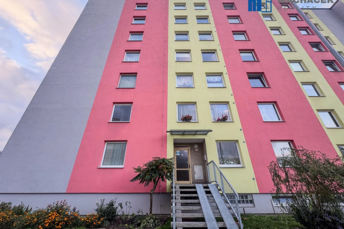 Prodej družstevního bytu 4+1 se zasklenou lodžií o velikosti 89,35 m2, nacházejícího se v 7. patře (8. NP) panelového domu s výtahem, na adrese Edisonova 1644, Teplice. K bytu náleží sklepní koje. Byt má dva vchody, z toho jeden zadní je bezbariérový, vhodný i pro vozíčkáře.