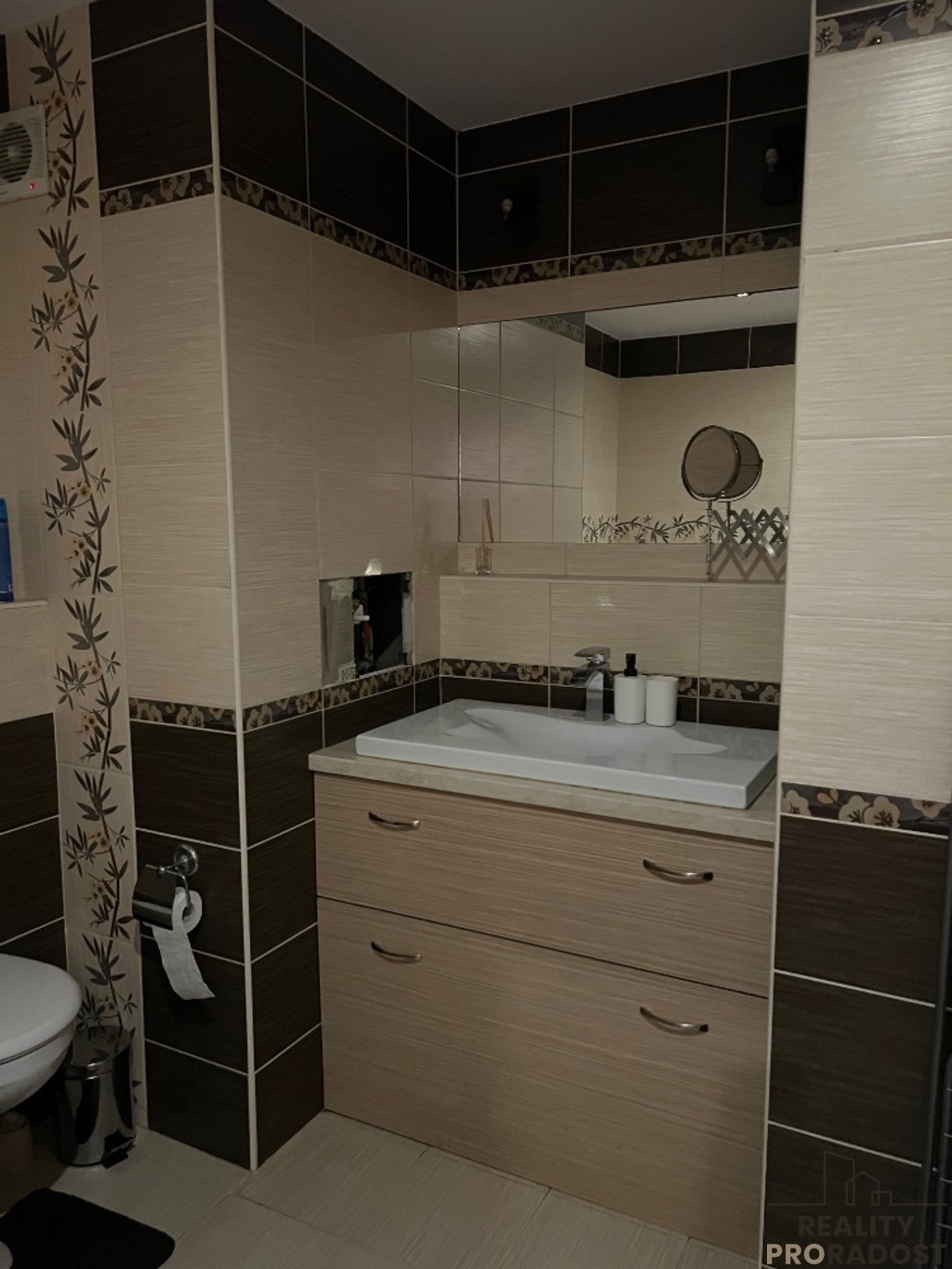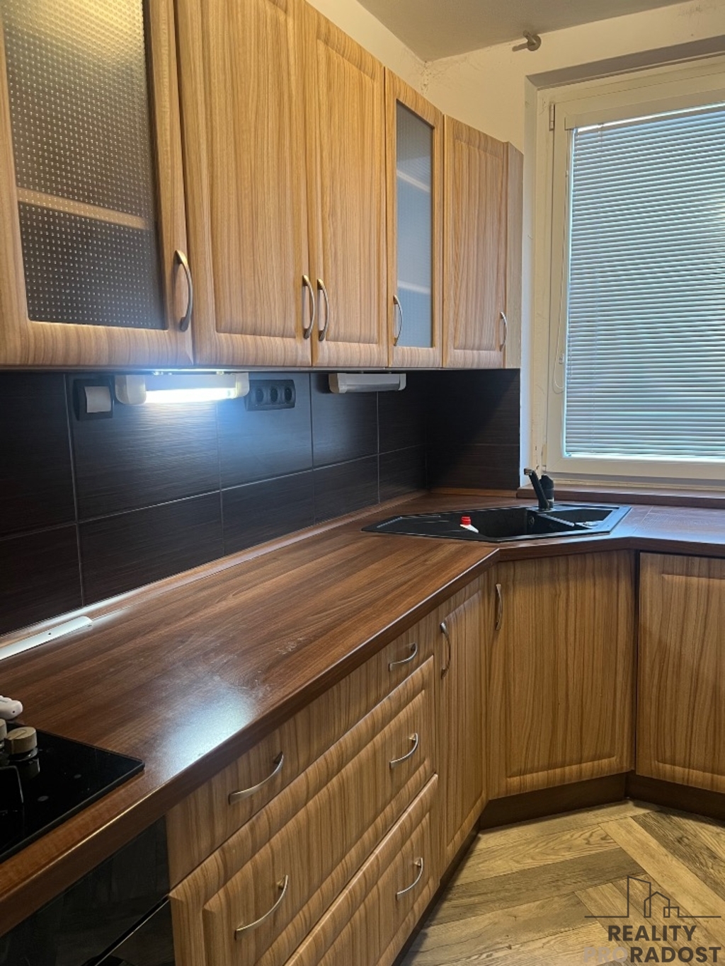 Je po celkové rekonstrukci, plastová okna, zděné jádro, kuchyňská linka, lino, dlažba, plovoucí podlahy. Součástí prodeje je i prostorná pěkně řešená vestavěná skříň v ceně 90.000,- Kč.