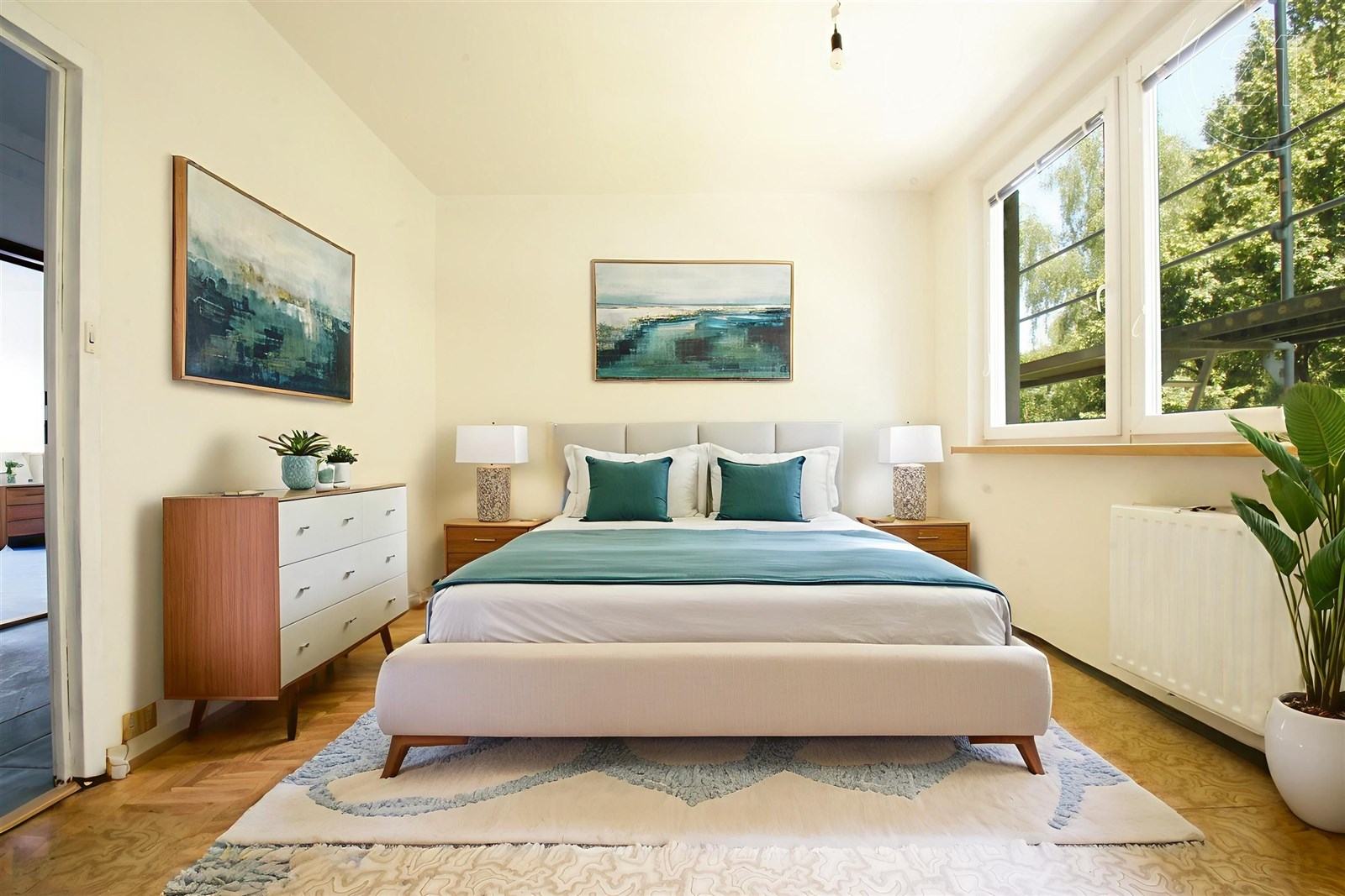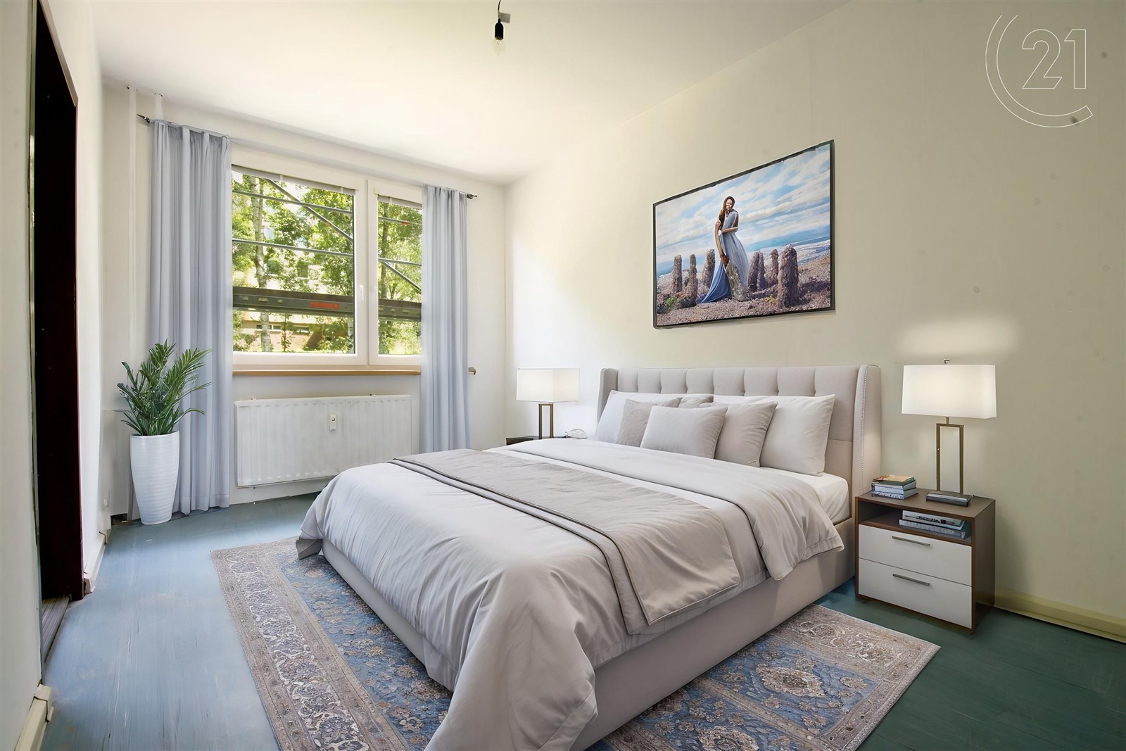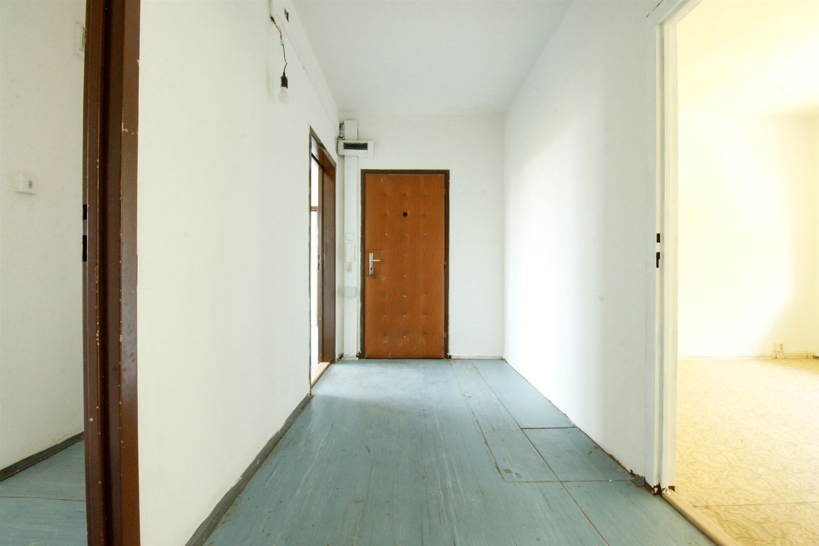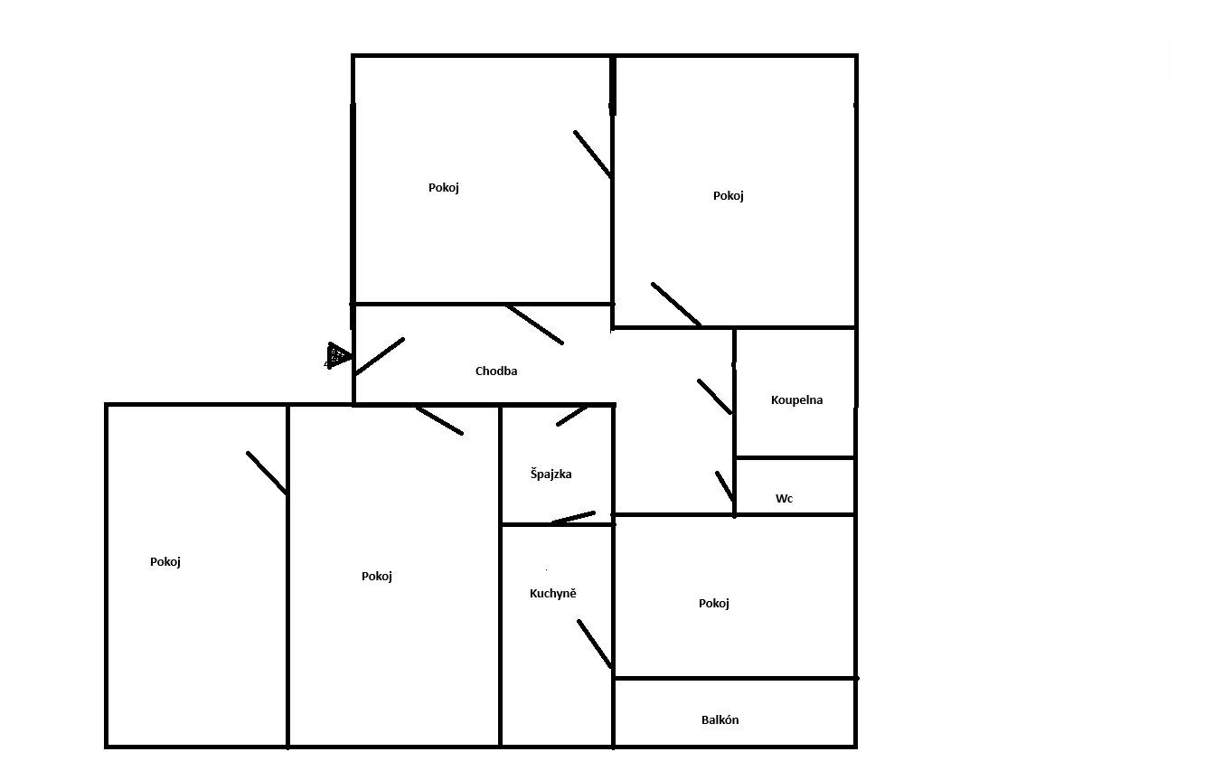 Byt nabízí podlahovou plochu 99 m2 a dále k němu patří sklepní kóje a balkon. Hlavní devízou bytu je prostorná dispozice, kde díky lehké stavební úpravě lze vytvořit až pět samostatných pokojů a kuchyni. Navíc jsou v bytě dvě stoupačky, a tak lze zbudovat dvě oddělené toalety či technickou místnost/komoru, kam hravě schováte pračku i se sušičkou. Současná dispozice bytu se skládá z prostorné centrální vstupní chodby, pěti pokojů, kuchyně, komory (dříve druhá toaleta), koupelny a oddělené toalety. Orientace bytu je na východ a západ, což zaručuje dostatečnou světlost.