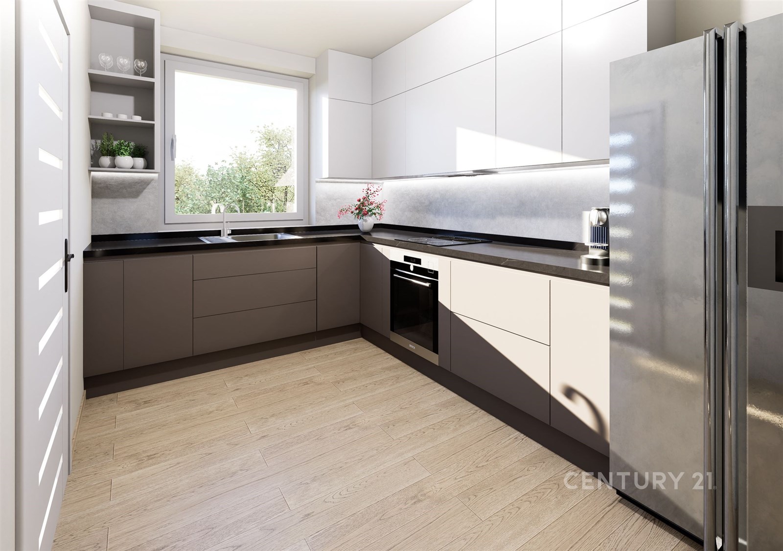Kuchyně dle vizualizace: Byt bude předán s kuchyňskou linku, nebo s možností instalace kuchyně dle domluvy a Vašeho výběru.