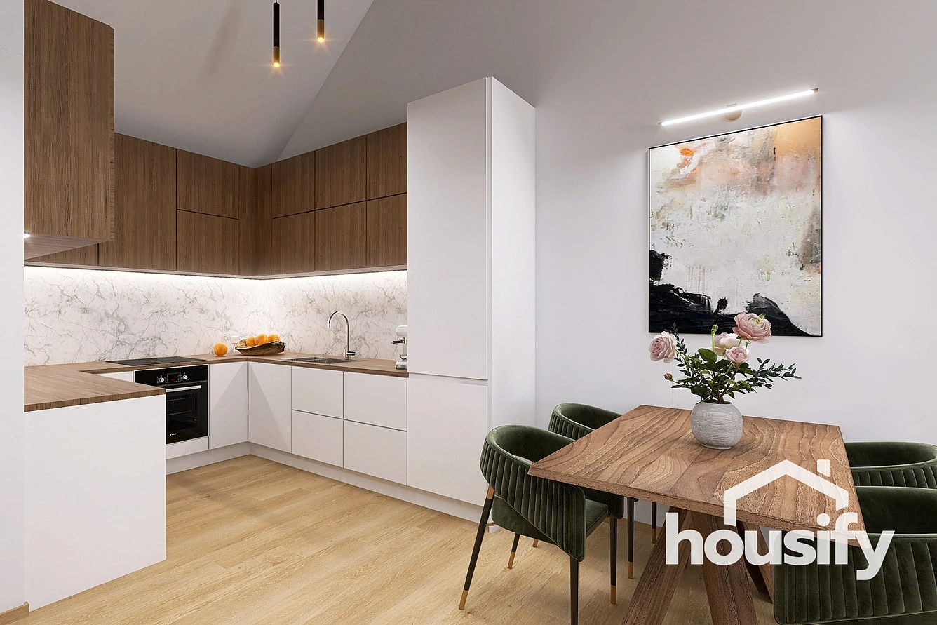 Hlavní obytná část o rozloze 42 m² spojuje otevřený mezonet, obývací pokoj a kuchyňský kout. Výjimečnou atmosféru tohoto prostoru vytváří kombinace minimalistických detailů, industriálního kovového schodiště a hřejivosti přírodních materiálů, jako jsou dřevěné trámy. Pečlivé propojení těchto prvků dodává interiéru nezaměnitelný charakter. Další komfort zajistí dvě samostatné ložnice a dvě koupelny s toaletou.