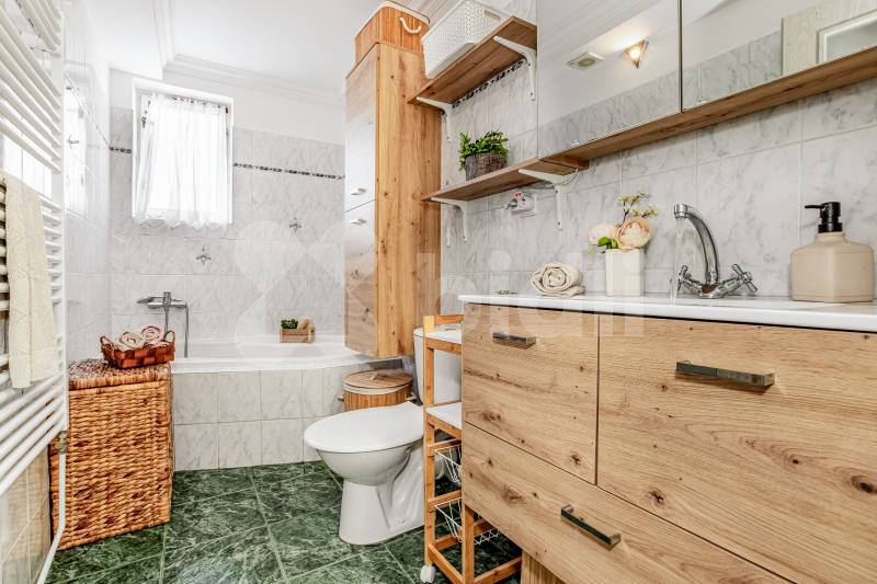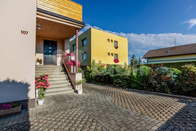 Byt se nachází v 1. patře (2. nadzemním podlaží) rodinného domu s krásnou v zahradou s výjimečným výhledem na České Budějovice.