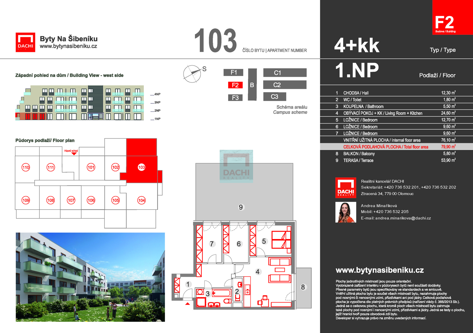Navazujeme na úspěch první etapy a přinášíme vám jedinečnou příležitost pořídit si nový domov v atraktivním projektu Byty Na Šibeníku. DACHI, prodejce a partner developera, vám v rámci druhé etapy nabízí ke koupi byt 4+kk (č. 103) o ploše 79,9 m² s terasou o velikosti 59,7 m². Byt se nachází v 1. nadzemním podlaží bytového domu F2, který je součástí šestipodlažního objektu se čtyřmi nadzemními a dvěma podzemními podlažími.