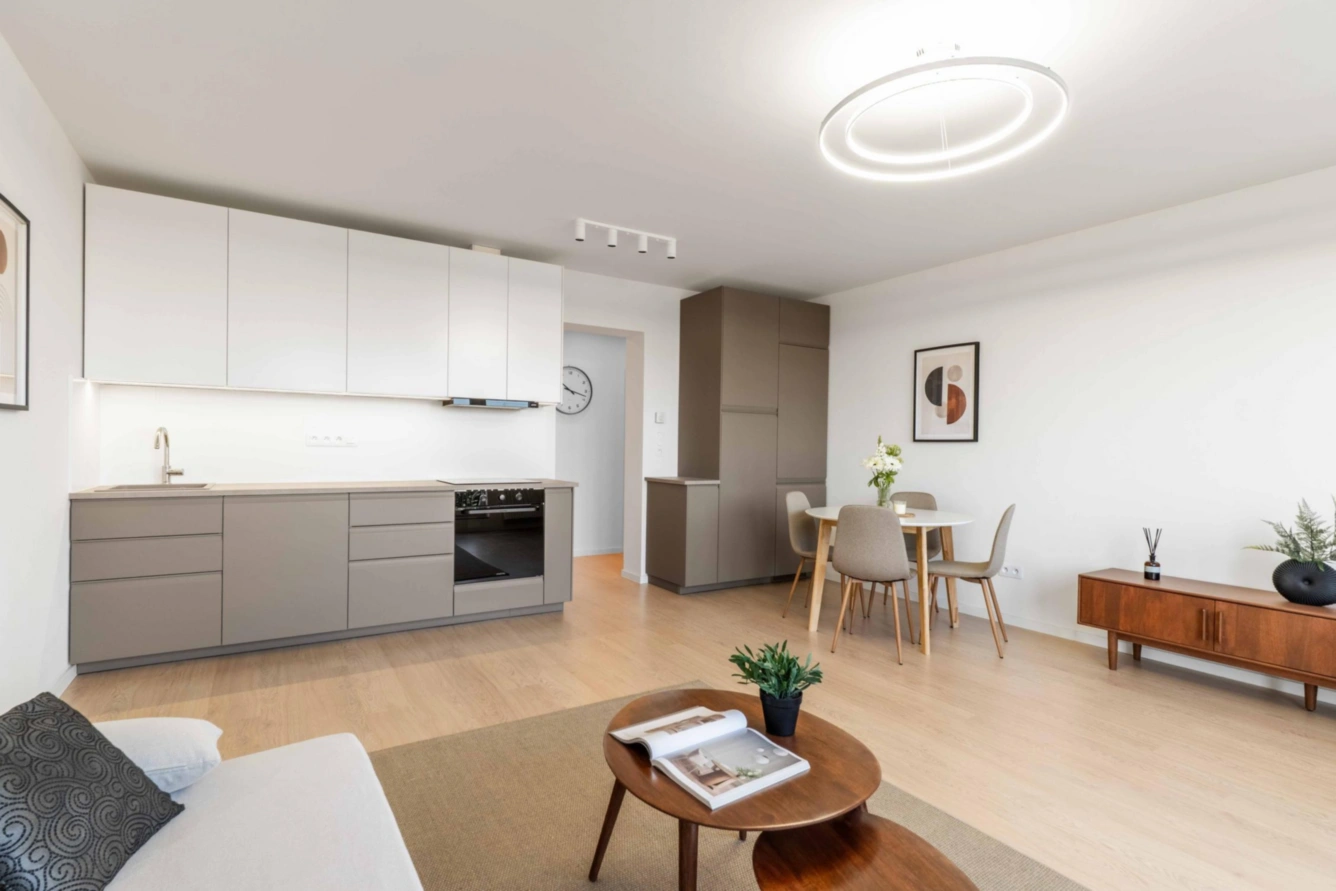 Byt právě prošel kompletní a kvalitní rekonstrukcí, která zahrnuje nové rozvody elektřiny, vody a odpadů, nové podlahové krytiny, moderní obklady a dlažbu italské značky Marazzi a koupelnu se sanitou značky Grohe. Součástí je také zcela nová kuchyňská linka vybavená vestavnými spotřebiči značky Gorenje s prodlouženou zárukou 5 let.