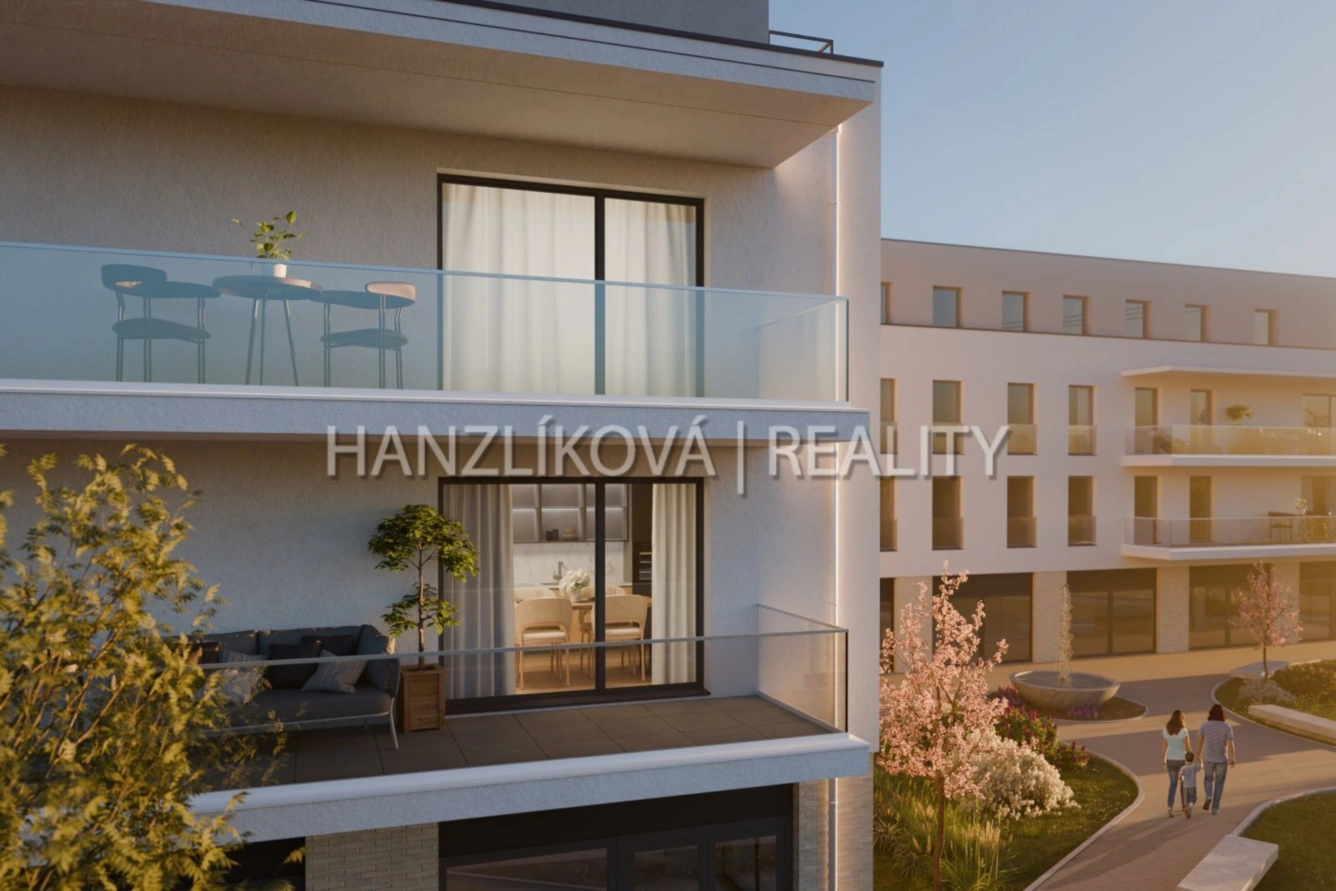 prostorné chodby, která nabízí dostatek místa pro vestavné skříně a úložné prostory celé rodiny, dvou koupelen, přičemž jedna slouží jako rodinná a druhá je součástí ložnice, samostatné toalety, hlavní obytné části s kuchyňským koutem a jídelnou, ze které je přes portálové dveře vstup na terasu a zelené plochy, 3 pokojů, šatny, pracovny a ložnice. Součástí bytu je terasa o výměře 19,48 m2 a zelená střecha o výměře 12,47 m2 a 4,9 m2 a dále sklepní kóje umístěná v suterénu domu.