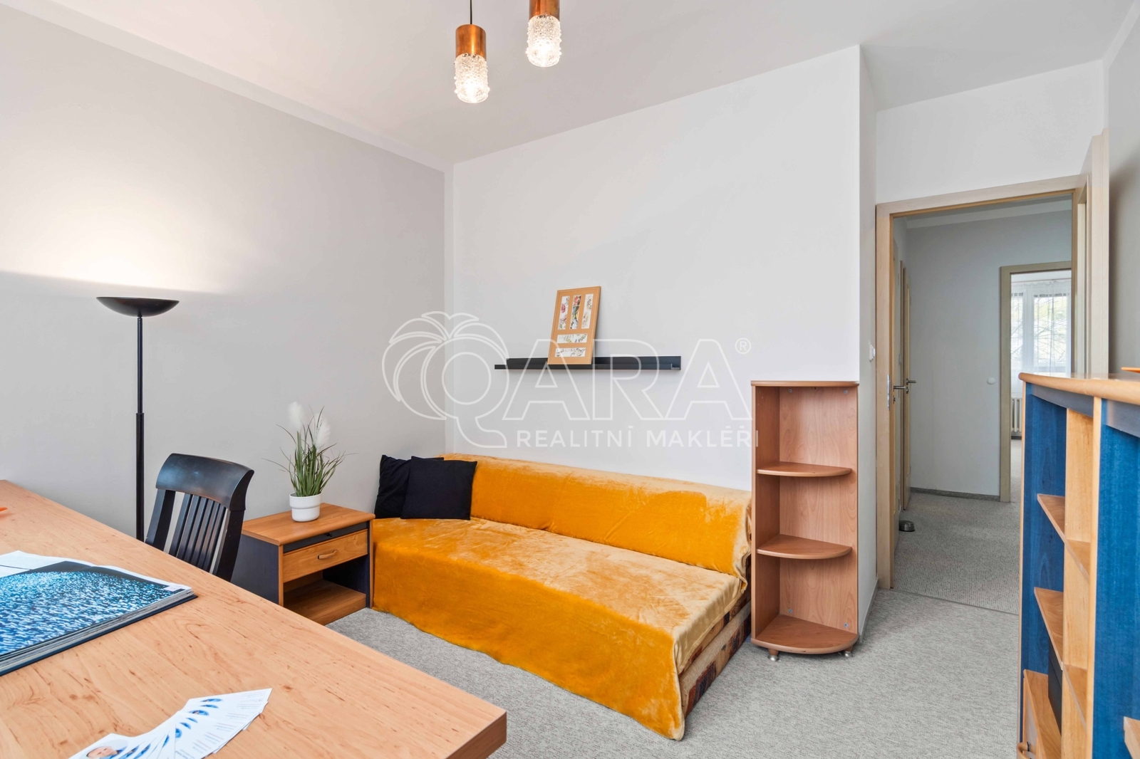 K bytu patří dětský pokoj, pracovna (může být dalším dětským pokojem) a místnost s oknem nyní sloužící jako komora a spíž, kde lze zřídit další ložnici. Dále oázou klidu je ložnice, jedinečná koupelna s vanou i sprchovým koutem pro Váš odpočinek, samostatná toaleta, hala, chodba a předsíň s bezpečnostními dveřmi. Každá žena si zamiluje promyšlenou šatnu - krásnou, funkční a plnou prostoru a pračku schovanou ve vestavěné skříni.