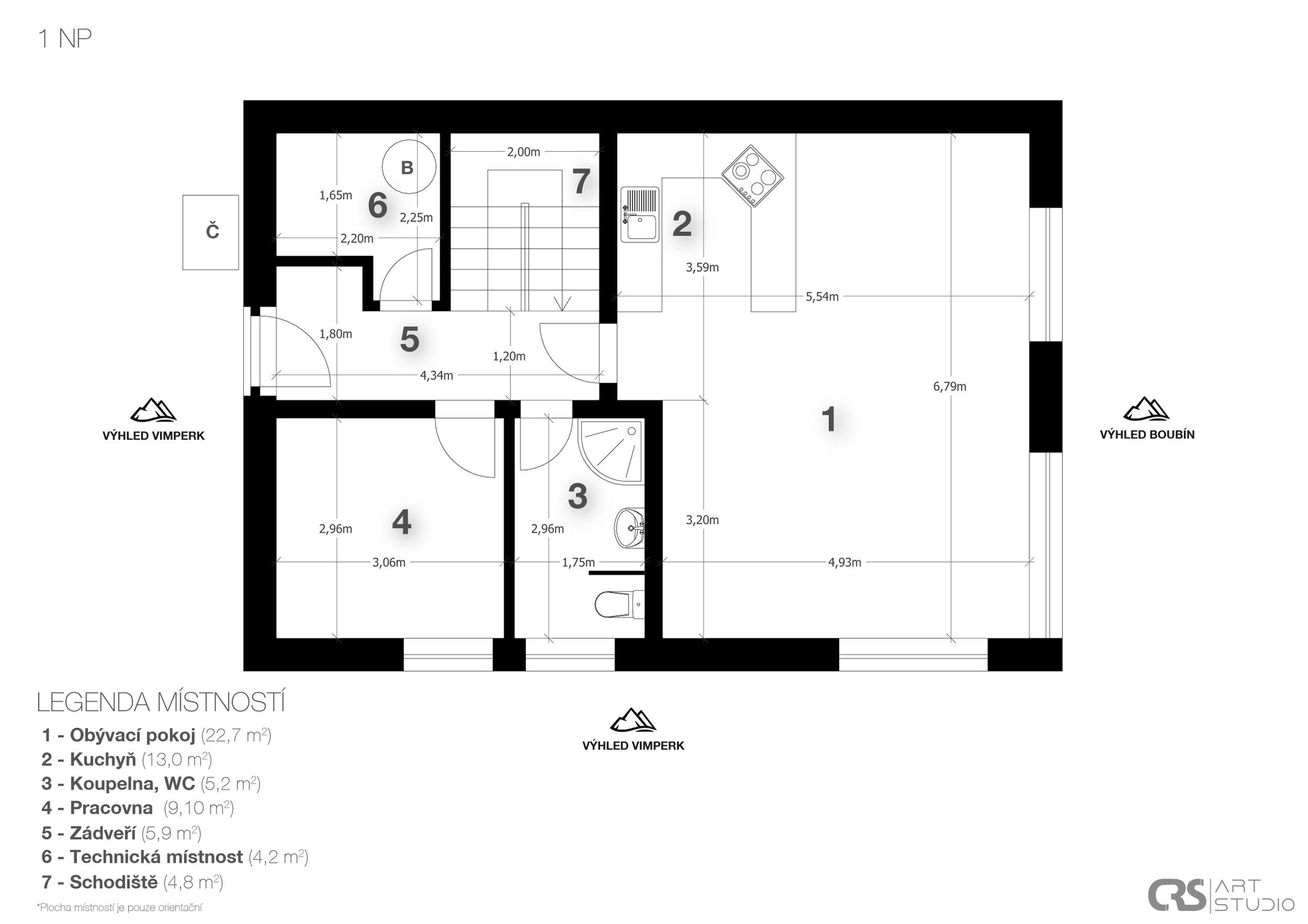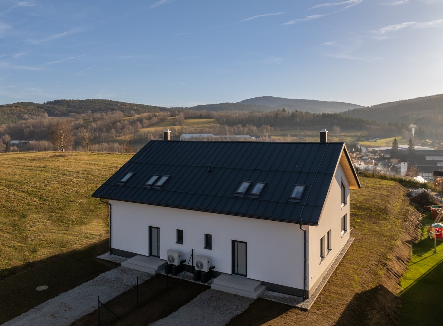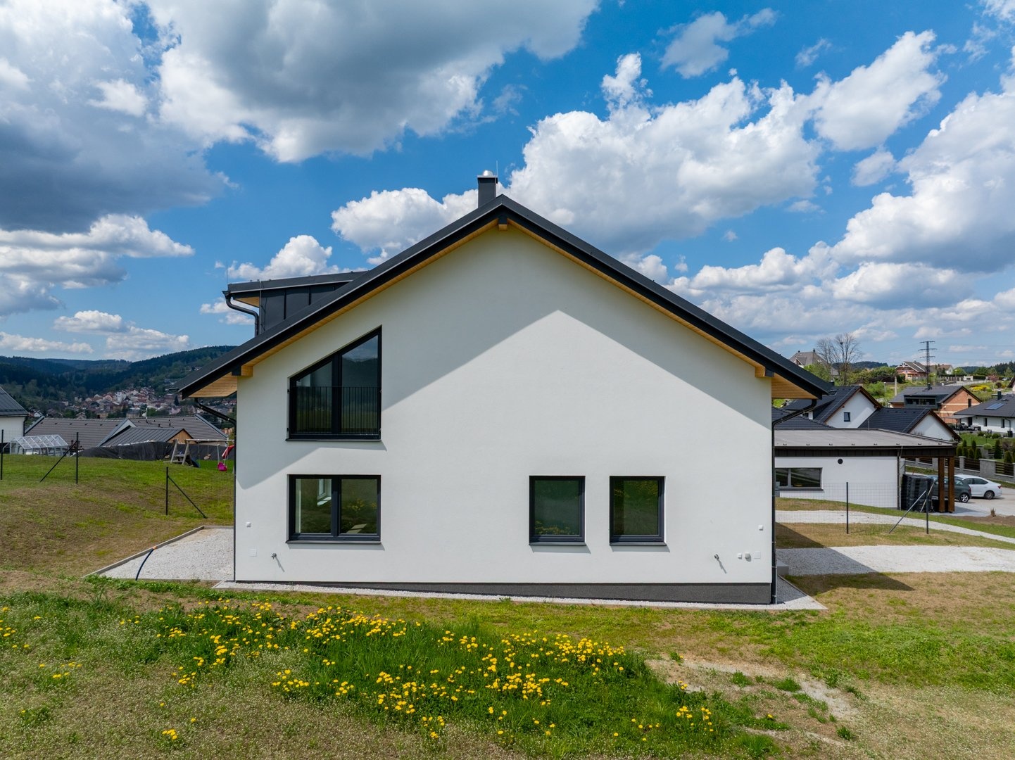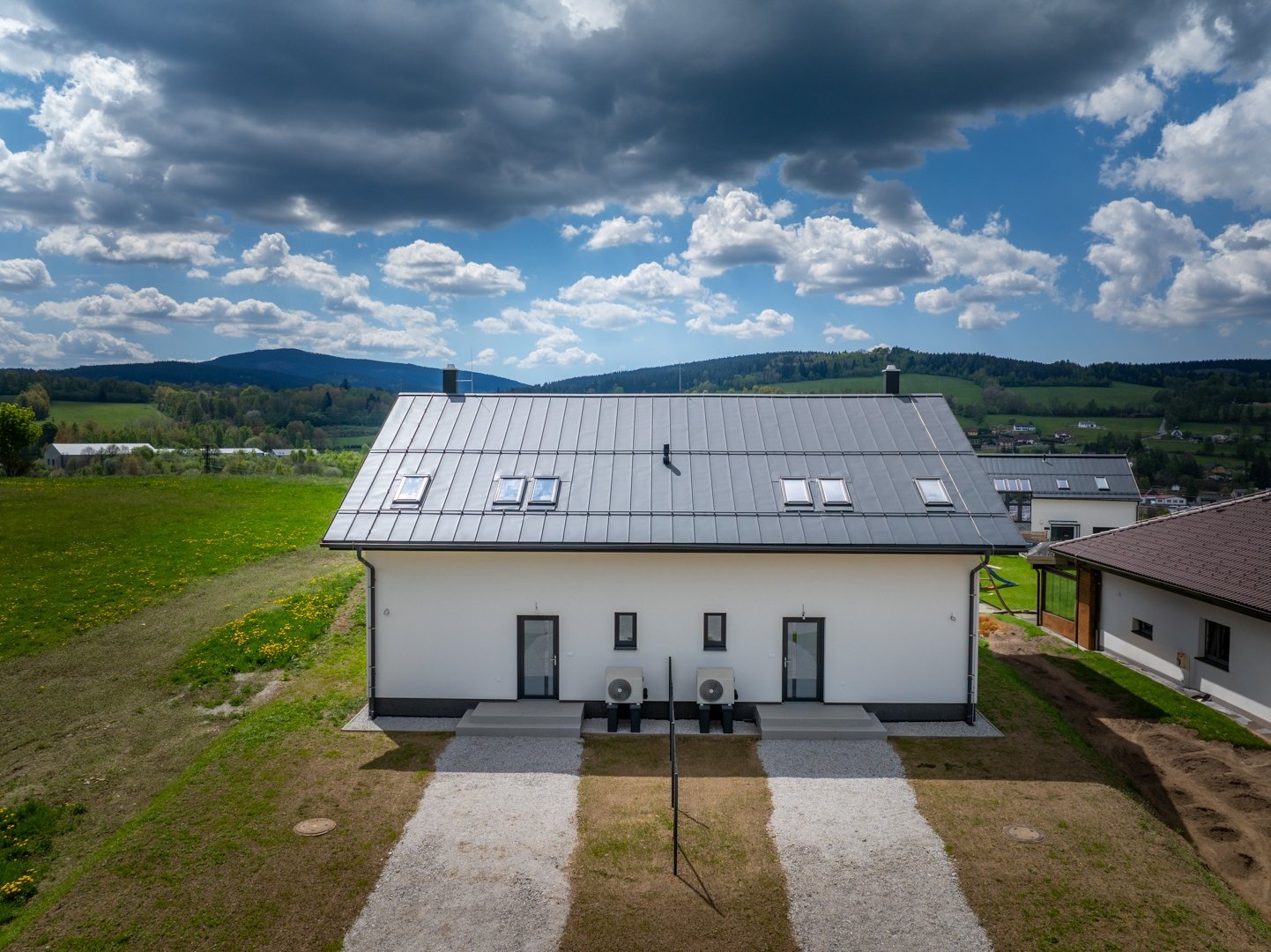 Prodej moderního dvoupodlažního bytu 5+kk (130 m2) s privátní zahradou (564 m2) a dvěma parkovacími místyHledáte bydlení, které spojuje komfort, moderní architekturu a dechberoucí výhledy? Pak je tento dvoupodlažní byt 5+kk (130 m2) trefou do černého! Nachází se v novostavbě moderního cihlového dvojdomu, dokončeného v roce 2024, který leží na okraji obce v klidné lokalitě obklopené přírodou.Proč si tento byt zamilujete?* Užitná plocha 130 m2 je ideální pro rodinný život.* Soukromá zahrada 564 m2 nabízí dostatek prostoru pro relaxaci a volnočasové aktivity.* Dvě parkovací stání (25 m2) mají hotovou přípravu na nabíjení elektromobilu.* Výhled na legendární šumavskou horu Boubín zdůrazňuje fakt, že máte přírodu na dosah.* Maximální soukromí zajišťuje protihluková izolace mezi jednotkami.* Úsporné a ekologické řešení máte zaručené díky tepelnému čerpadlu, retenční nádrži a přípravě na fotovoltaiku.* Dokončené jsou podlahy, koupelny a WC. Promyšlený design a pohodlíDvojdům je navržen s důrazem na komfort a soukromí. Obě jednotky mají vlastní přípojku na kanalizaci, vodoměr, podlahové vytápění v celém domě a přípravu pro fotovoltaiku. Tři pokoje nabízejí úchvatný výhled na Boubín a rohový pokoj s lomenými okny odhaluje navíc panorama města Vimperka.Lokalita – klid i dostupnostDům stojí na konci ulice, která přechází v louky a lesy, což zajišťuje nerušený klid. Vše potřebné k životu najdete ve Vimperku, kam se dostanete během pár minut. Přímo pod kopcem roste nové obchodní centrum. Na výlety nemusíte nutně vyrážet hlubokými lesy podél vod až k Boubínu. Stačí si vyšlápnout na 500 m vzdálenou Velkou Homolku, kde máte Vimperk jako dlani.Obklopeni hlubokými lesy a čistou přírodou tu začnete psát novou životní kapitolu.Neváhejte mě kontaktovat a domluvit si prohlídku!