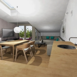 Podkrovní byt dispozice 3+kk s orientací severo-východ a jiho-západ. Do bytu se vstupuje přes malou předsíňku, kde...