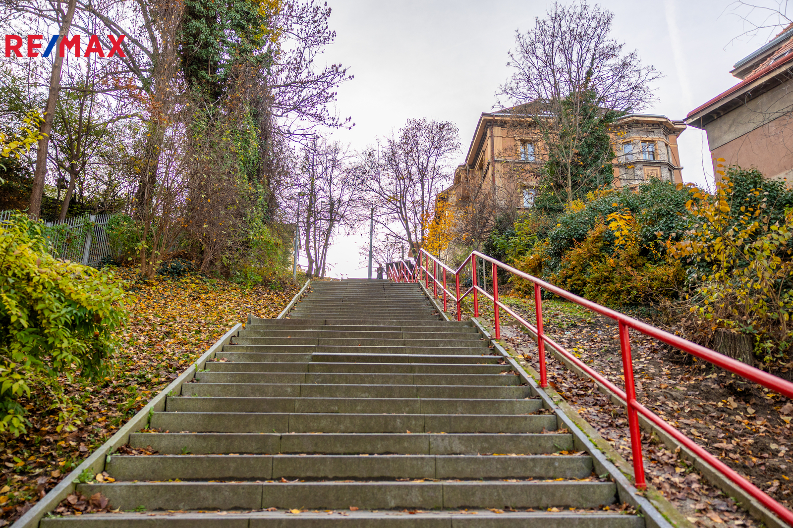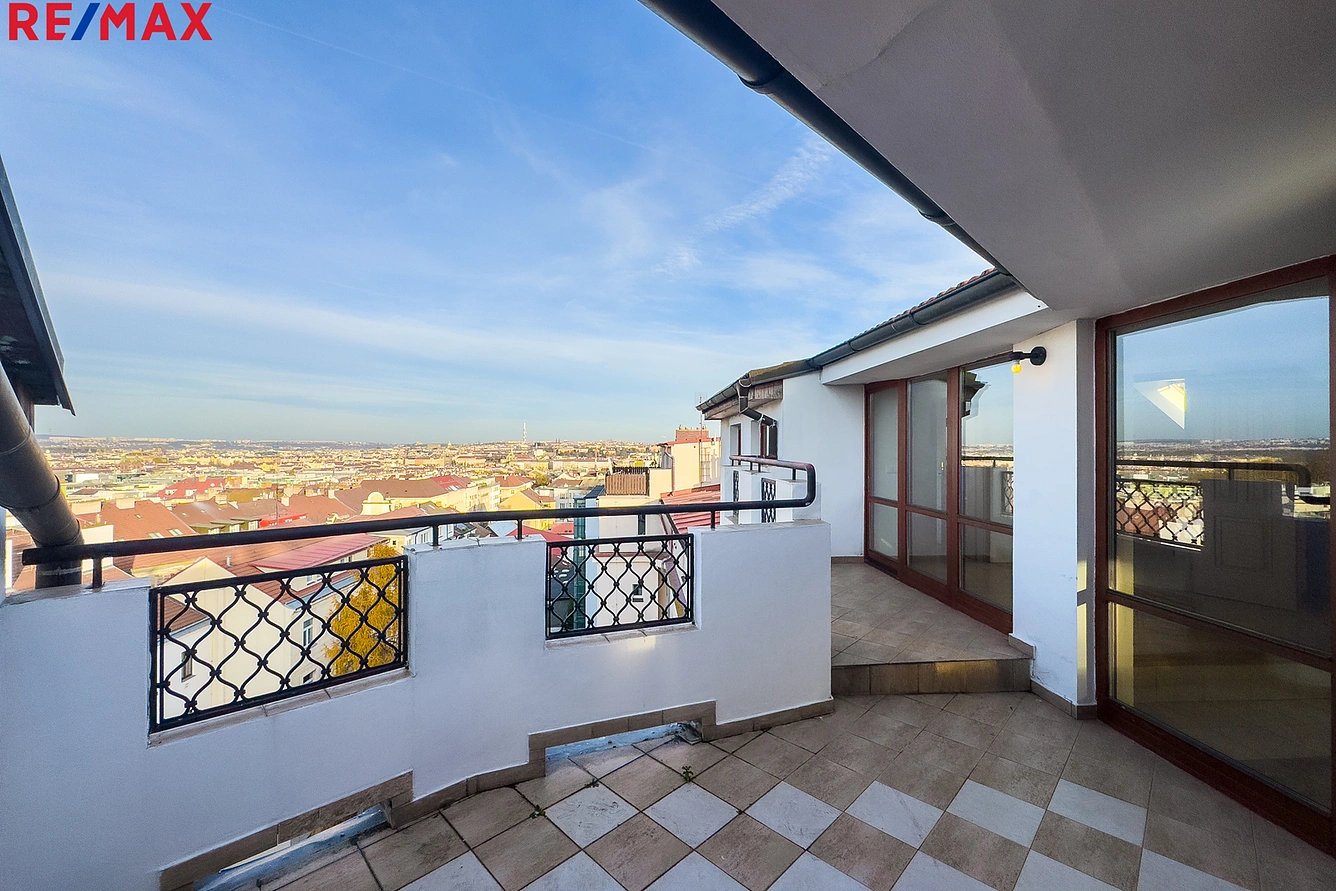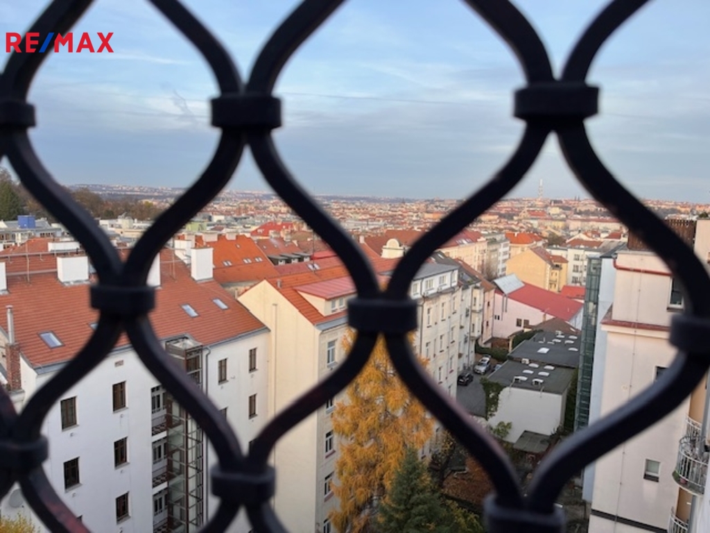 Hlavním lákadlem bytu je však prostorná střešní terasa o velikosti 18m2, která je umístěna do vnitrobloku a nabízí výjimečný a nerušený výhled na celou Prahu.
