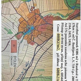 Stavební pozemek 9386m2 v Rankově u T. Svinů L.V. 719, přístup ze dvou stran, přímý majitel.