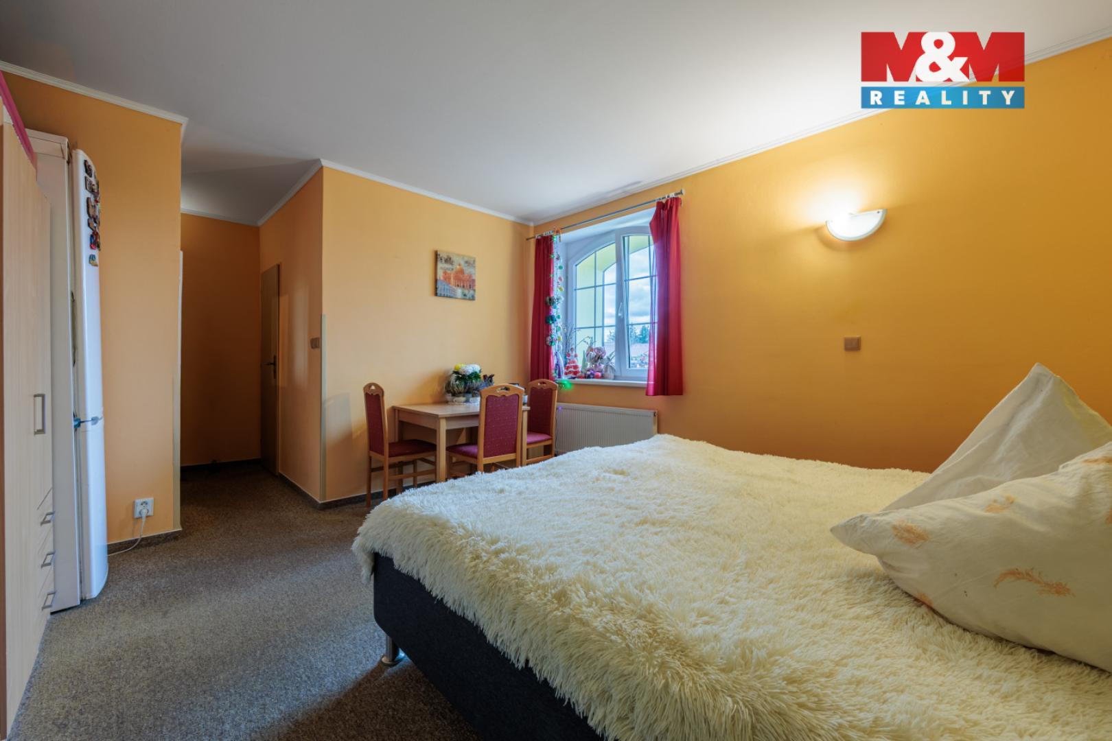 Jedinečná nemovitost (víceúčelová stavba)  v klidné části obce Horní Lomany ve Františkových Lázních představuje ideální podnikatelský záměr v ubytovacích službách. Tento objekt ve velmi dobrém stavu s kapacitou 35 lůžek nabízí v 1.NP - byt 4+1, hala se schodištěm, recepce, restaurace s barem, soc. zař., kuchyně se zázemím (sklady, kotelna, úklidová místnost, přípravna), pokoj s vlastním soc. zař. pro ZTP. Ve 2.NP - chodba, 11 pokojů s  vlastním soc. zař., sklad prádla, úklidová komora. Objekt je napojen na veřejné distribuční IS vody, kanalizace, elektřiny a plynu, vytápění objektu zajišťují dva plynové kotle s vlastními okruhy pro byt a penzion. Vedle objektu je zahrada s velkou garáží a zahradním domkem.  Nezastavěné pozemky jsou oplocené, v převažující části zpevněné pojezdovou zámkovou dlažbou s 16 parkovacími místy. Zaujala Vás tato nabídka, neváhejte nás kontaktovat a domluvit si čas Vaší prohlídky. S financováním Vám může pomoci naše MMF.