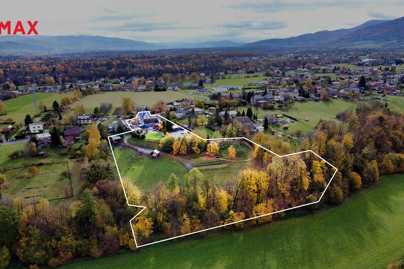 Skvělý, velkorysý prostor téměř 17000 m2 (ano, jednacelásedm hektaru!) pro podnikání i pro bydlení! Chcete podnikat a pořádat akce, svatby, školení, terapie, setkávání, eventy nebo cokoli jiného? Mít svůj parádní prostor, jasné soukromí a klid? Beskydy na dohled, hranice s Polskem a Slovenskem také. Více než 16700 m2 pozemků různorodého tvaru, možností využití také krajinného reliéfu - pozemky se dále od silnice svažují = ještě lepší soukromí. Jihovýchodní polovina rovinatá, severozápadní svažitá směrem k potoku a k vlastnímu lesu.
