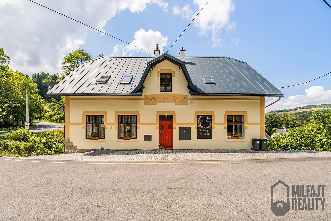 Na fantastickém místě, které je branou do Českého Ráje, vám představím opravdu velký dům, který nabídne spoustu potenciálu. Ať hledáte vlastní bydlení, rekreaci nebo spojení s podnikáním. Tady v Propastném se můžete realizovat. Majitelé právě dokončili revitalizaci fasády a střechy. Domu tak vdechli nový život. Zachované původní prvky, decentní barvy nebo tmavá střešní krytina z domu nejen opticky dobře fungují, ale samozřejmě zvyšují komfort bydlení a pro vás znamenají méně starostí s novou nemovitostí. Dům, který byl postaven v roce 1912 sloužil původně jako zájezdní hostinec. Za 6 let co majitel dům vlastní na něm udělali spoustu práce: rozvody vody, kanalizace i elektřiny. Dům je napojen na obecní vodovod, knalizace je svedena do septiku. Proběhla modernizace společných chodeb, renovace dřevěných dveří a stejně tak vybudování nových koupelen i toalet. Zároveň je v domě ještě další práce, která čeká na budoucího majitele, například dokončení 2 apartmánů, a nebo prostorný sklep cca 26 m2 a dílna v suterénu 18 m2, kde může být třeba wellness.Dispoziční uspořádání domu: Suterén Apartmán č.1 - cca 30 m2, po rekonstrukci, sociální zázemí na společné chodběApartmán č.2 - cca 30 m2, před rekonstrukcí 1x koupelna, 1x WC, Dílna cca 18 m2, Technická místnost + sklep, cca 26 m2PřízemíApartmán č.3 - cca 66 m2, po rekonstrukci Apartmán č.4 - cca 60 m2 - rozpracovaná rekonstrukce, Samostatná místnost cca 16 m2. Možnost jako kolárna, technická mistnost2 x toaleta na chodběPodkrovíApartmán č.5 - malý podkrovní pokoj cca 9 m2 s koupelnou a WC v mezipatře, celoročně nejoblíbenější ubytování v domě. Byt majitelů - dispozičně řešený jako 3/4+kk s výměrou cca 150 m2 - 2 koupelny, spíš, komora. Vytápění vlastním plynovým kotlem + krb. Byt je opravdu prostorný, jen obývací pokoj má cca 50 m2Půda cca 90 m2 - sklad, možnost rozšíření bytu. S ohledem na velikost domu je jeho využití všestranné. Pokračovat v krátkodobých nájmech, přebudovat na dlouhodobé bydlení nebo jen jako velkorysé vlastní bydlení. Jak pro vlastní bydlení, tak pro pronájmy je samozřejmě rozhodující lokalita. Nedaleko Železného Brodu je dům umístěn přímo u hlavní komunikace. V Železném Brodě je kompletní vybavenost - markety, lékař, školy, kino. Lokalita je především zajímavá svým umístěním nedaleko Českého Ráje a celkově v oblíbeném regionu Turnovska. Turisticky celoročně vyhledávané místa zajišťují dostatek zájemců o ubytování. Do Liberce, Jablonce n. N. nebo Jičína se dostanete do cca 30 minut, do hodiny cesty pak dojedete do Prahy, Harrachova nebo Bedřichova. Zkrátka ideální lokalita pro víkendové vyžití jak v letních tak zimních měsících.O tom všem se přesvědčíte se mnou osobně na prohlídce, neváhejte mě kontaktovat a budu se těšit na viděnou.Dům je z důvodu absence PENB zařazen do kategorie G. Uvedené výměry jsou pouze orientační, právě dochází ke zpracování pasportu nemovitosti.