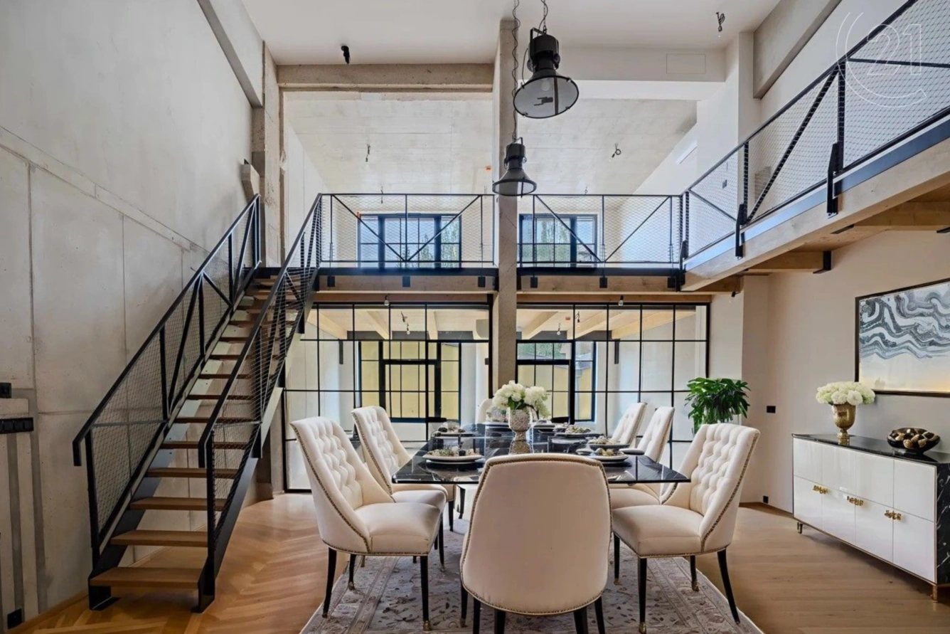 Hledáte unikátní prostor pro Vaši firmu? Chcete zazářit před svými klienty? V tom případě nabízíme k prodeji zcela atypický a jedinečný ateliér s dispozicí 4+kk o celkové výměře 174,64 m2. Tento prostor v nově vzniklém developerském projektu je ideální pro firemní využití, nachází se hned v 1. patře budovy. Dominantou kanceláře je plně otevřený prostor uprostřed ateliéru až do výše 6,5m. Ateliér je nadstandardně vybaven: rekuperací vzduchu, klimatizacemi a předokenními elektro žaluziemi. Teplo v bytě zajišťuje podlahové topení. Je zde položena dřevěná vícevrstvá podlaha bělený dub. Industriální styl celého projektu kombinuje přiznaný beton a původní konstrukci se dřevem, celý dojem podtrhují velkoplošná hliníková okna.