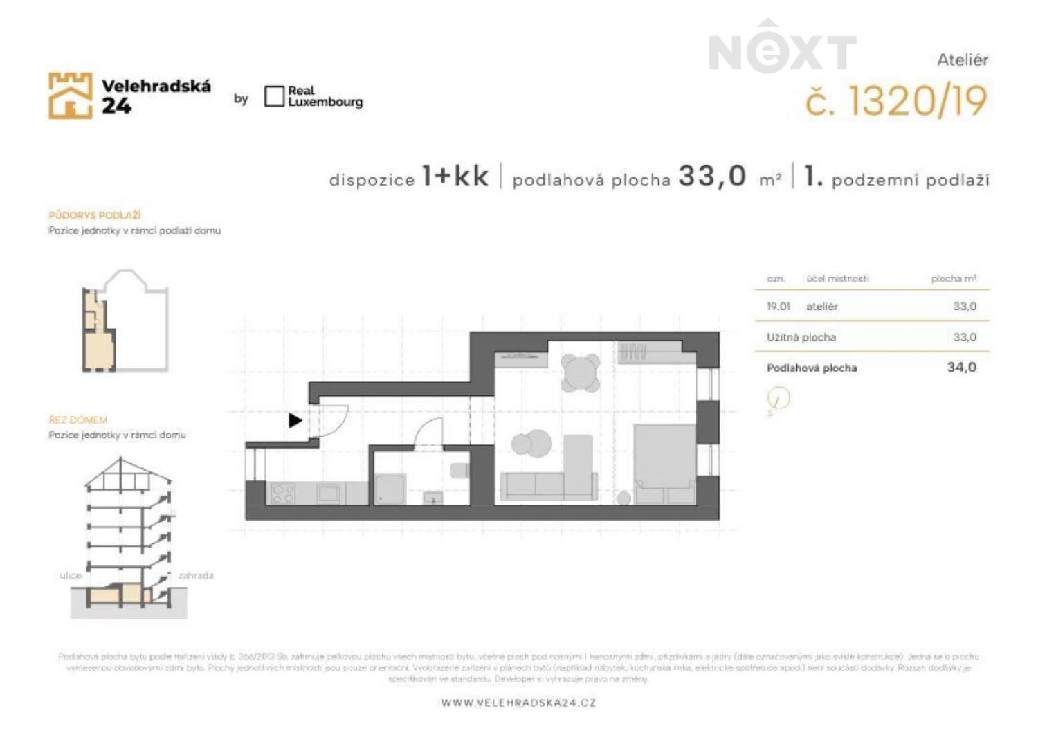 Chcete podnikat na skvělé adrese? Máme pro Vás krásný ateliér 1+kk, v činžovním domě, v jedné z nejžádanějších lokalit Prahy, na Vinohradech, nedaleko náměstí Jiřího z Poděbrad. Nabízíme k prodeji nově zrekonstruovaný ateliér 1+kk o celkové ploše 34 m², v 1. podzemním podlaží činžovního domu v projektu "Rezidence Velehradská". Vinohrady jsou vyhledávaná lokalita díky klidnému prostředí, zeleni a výborné dostupnosti do centra města. V okolí najdete veškerou občanskou vybavenost, včetně škol, obchodů, restaurací a kaváren. Zastávky MHD jsou v docházkové vzdálenosti. Projekt "Rezidence Velehradská" představuje bydlení s důrazem na komfort v jedné z nejžádanějších částí Prahy. Tento ateliér je ideální jako zajímavá příležitost pro investory. V inzerci jsou použity reálné fotografie. Součástí naší nabídky je kompletní servis, tedy právní služby a zajištění všech potřebných dokumentů, pomoc se zajištěním financování, pojištění nemovitosti i domácnosti, přepisy energií. Pouze u nás vám zajistíme moderní financování až na 30 let, bez ohledu na věk a prokazování příjmů, či nutnosti předkládat daňové přiznání (u podnikatelů). Zeptejte se nás a bydlete chytře! Bližší informace Vám ráda sdělím na osobní prohlídce bytu. Pro komunikaci uvádějte evidenční číslo zakázky N114264.