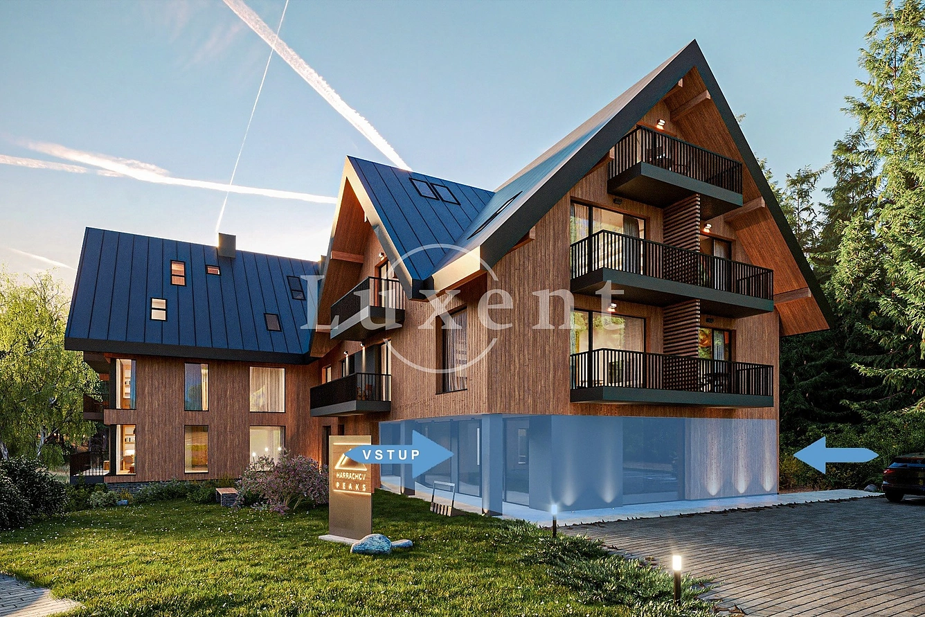 Nabízíme stylový plně prosklený obchodní nebytový prostor v projektu Harrachov Peaks – s přístupem z ulice a v pěší dostupnosti do centra Harrachova. V luxusním projektu je 16 apartmánů s výhledem na sjezdovky Černé hory, wellness se saunou a vířivkou a plně vybavené fitness. Obchodní prostor se nachází ve větší části 1. NP s přístupem z ulice, na kterou je prostor plně prosklený a viditelný i z hlavní harrachovské příjezdové cesty, jen mírně opodál a v příjemném bezprostředním zeleném okolí. Přímo pod projektem je oblíbená harrachovská restaurace Terassa. Užitná plocha prostoru je 108,3 m2 a většina z ní je nyní open space, v zadní části se pak nachází menší kancelář se sociálním zázemím (viz přiložený plánek). Prostor se ideálně hodí pro prodejní aktivity, případně pro kavárnu s fresh občerstvením (v tom případě jsou nutné odpovídající úpravy) a další. Bližší informace rádi poskytneme v naší kanceláři.Harrachov patří mezi naše špičková horská střediska nejen se sjezdovkami (na nichž leží sníh nejdéle z našich horských středisek) a běžkařskými tratěmi, ale i s možnostmi celoročních aktivit a rekreace – cykloturistika, turistika, traily, termální lázně v blízkém Polsku a další. Je navštěvován napříč sezónami a rozvojové plány města jdou tomu naproti. Očekává se, že jednou bude Ski areál Harrachov propojen se sjezdovkami Rokytnice, což vytvoří další podnikatelské i rekreační možnosti.Energetická třída domu je velmi úsporná B.Domluvte si prohlídku, rádi vám prostor ukážeme.