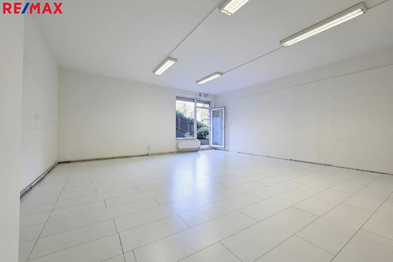 Výloha je osazena elektrickou bezpečnostní roletou značky LOMAX a celý prostor je vybaven bezpečnostním alarmem. Před vstupem lze vybudovat menší venkovní posezení nebo zahrádku, což rozšiřuje možnosti využití. Jednotka je vhodná pro širokou škálu podnikatelských záměrů – od obchodu a showroomu přes kancelář až po provozovnu služeb či menší gastronomii.