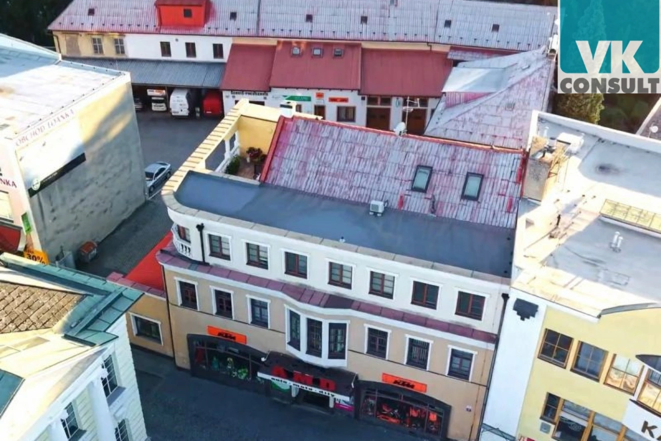 Nabízíme Vám ke koupi komerční areál s bydlením v centru města, který se nachází přímo na náměstí Míru ve Svitavách. Součástí areálu jsou nebytové i bytové prostory a dlážděný dvůr o výměře 1037 m2, který je uzavřen bránou na dálkové ovládání. Mezi nebytové prostory v budově směrem k náměstí patří provozovna Auto-Moto-Díly umístěná v přízemí s rozsáhlými sklady, prodejna motorek KTM ve 2.NP (s výtahem pro zásobování) s navazujícími sklady a kuchyňkou, dále pak samostatné kancelářské prostory. Nebytové prostory v ostatních budovách slouží jako velká dílna s montážní jámou, menší dílna s dvěma hydraulickými zvedáky pro automobily s vybavením pro pneuservis, spoustu menších skladů a dílen, poté zábavní (jumping) centrum a dětská herna. Zajímavé 2 mezonetové byty byly vybudovány v letech 1998 a 2007, jsou orientovány k jižní světové straně. Byt nad hlavní provozovnou a s výhledem do náměstí je o dispozici 4+1 s mnoha pobytovými zákoutími a má navíc prostornou venkovní terasu. Byt o dispozici 3+1 má příjemnou venkovní pavlač a okna má situována do vnitrobloku. Prostory v celém areálu jsou energeticky rozdělené, buď vlastními nebo podružnými měřidly. Vytápění je na bázi plynu, voda z veřejného vodovodu, odpady svedeny do městské kanalizace. Pro svoji polohu a účel využití se jedná o ojedinělou nabídku pro bydlení s podnikáním v historickém centru okresního města Svitavy. PENB G (průkaz energetické náročnosti se neopatřuje, jedná se objekt v památkově chráněné zóně)..