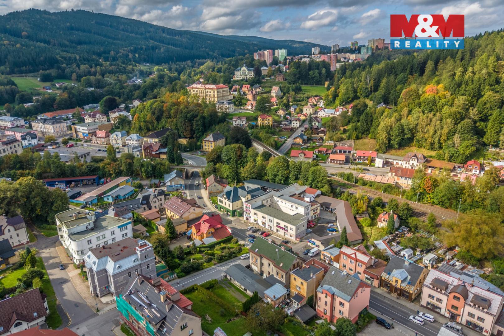 Nabízíme k prodeji komerční objekt v centru města Tanvald, ul. Krkonošská. Nemovitost o užitné ploše cca 1.500 m2 má 3 nadzemní podlaží. V přízemí je vstupní chodba s vystavenými prodejními vzorky, za prosklenými dveřmi pak velký prodejní prostor se smíšeným zbožím. V 1. patře je prodejna domácích potřeb, na chodbě býval bufet, nyní vystaveny další prodejní vzorky. Na prodejnu navazuje menší byt s terasou a vlastním vstupem přes dvůr. V 2. patře jsou 2 prostorné bytové jednotky přístupné přes společnou chodbu a hlavní vchod. Velkou výhodou je nákladní výtah, který zásobuje prodejnu v 1. patře. Nemovitost je ve výborném technickém stavu, rozvody elektřiny, vody, odpadu i plynu jsou dle dnešních norem, náklady na provoz nejsou veliké. Objekt je kompletně pronajatý s jistým příjmem, může ale sloužit k vlastnímu podnikání nebo průmyslové výrobě i s těžkými stroji, neboť stropy a podlahy jsou ze železobetonu. Součástí prodeje je podíl na společném dvoře. U hlavního tahu Praha - Harrachov.