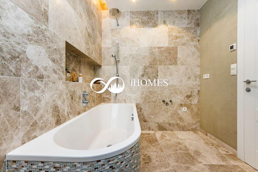 Podlahy: stříbřený mramor (INTERIER STONE) a dubové parkety (BOHEMIA Exclusive). Topení: podlahové topení po celém bytě vodní + elektrické (REHAU + DELTA) Omítky: stěny a stropy vápenocementové omítky (Sakret), stěrkové omítky (Stemex). Dveře: vchodové bezpečnostní, protipožární, protihlukové kazetové dveře třída 3+(Adlo), interiérové dveře (Profidoors). Okna špaletová (Okna Langer), světla (Rendl Light Studio), bojler (Dražice) ležatý na 200 litrů