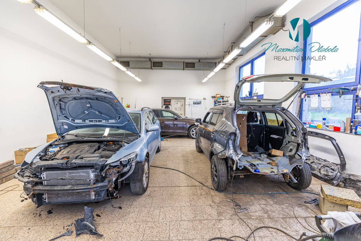 Autoservis, pneuservis, klempírna, zázemí pro zaměstnance, kanceláře, sklady. Ideální příležitost.