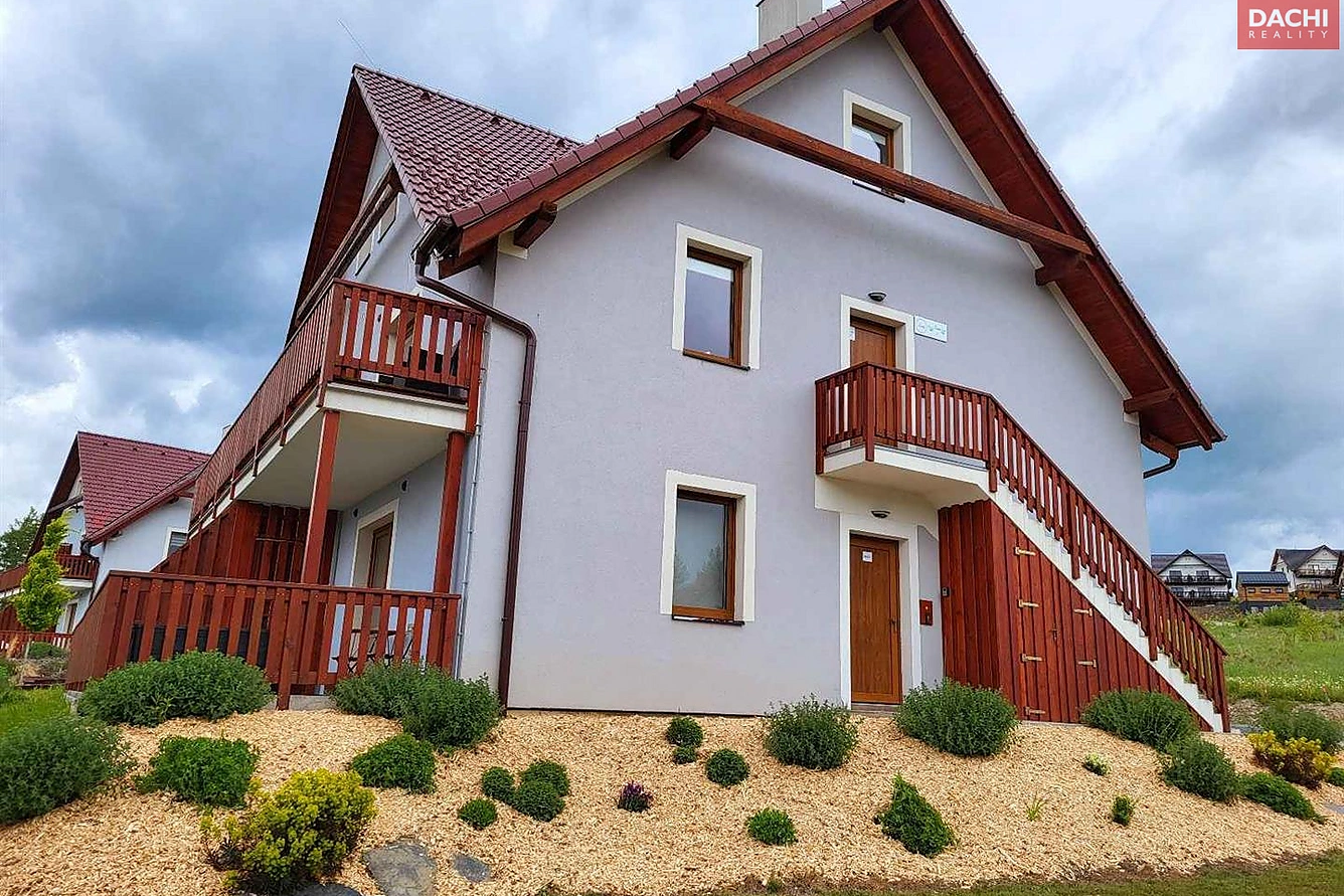 Nabízíme k prodeji kompletně vybavený, mezonetový apartmán o celkové výměře 93m², z toho 5,6m² balkon. Apartmán se nachází u obce Horní Václavov, okr. Bruntál, v blízkosti Karlovy Studánky. Jedná se o žádanou lokalitu, s nejčistším vzduchem a mnoha zajímavými turistickými cíli v Jeseníkách. Samotný apartmán je v prvním patře zděného, zatepleného domu. Je určen až pro 6 osob a skládá se z obývacího pokoje s kuchyňským koutem, samostatnou ložnicí, další velkou obývací ložnicí a koupelnou s WC. Celý apartmán se nabízí jako nadstandardně vybavený, včetně spotřebičů v kuchyni, vybavení, nábytku, sedačky, televize, komody, ...atd. Dům je zděný, zateplený, střecha je z pálené tašky, topení je zajištěno elektrickým kotlem a radiátory, v předsíni a koupelně je podlahové topení. Teplá voda - elektrický bojler, podlahy jsou vinylové, okna plastová. Jedná se o úspěšně fungující a žádaný apartmán s hodnocením 9,5 na platformě booking.