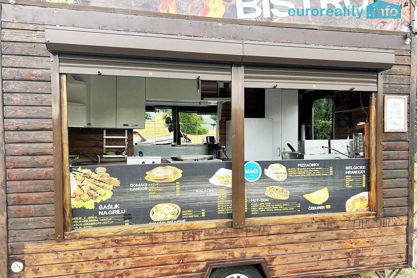 Stánek je zánovní a je připraven k okamžitému provozu. Vybavení: lednice, mrazák, pracovní pulty a police, fritéza, grilovací zařízení, dřez s rozvody vody, elektrické rozvody, osvětlení, venkovní výdejní okno s roletami, reklamní cedule s jídelním lístkem (možno ponechat nebo odstranit).