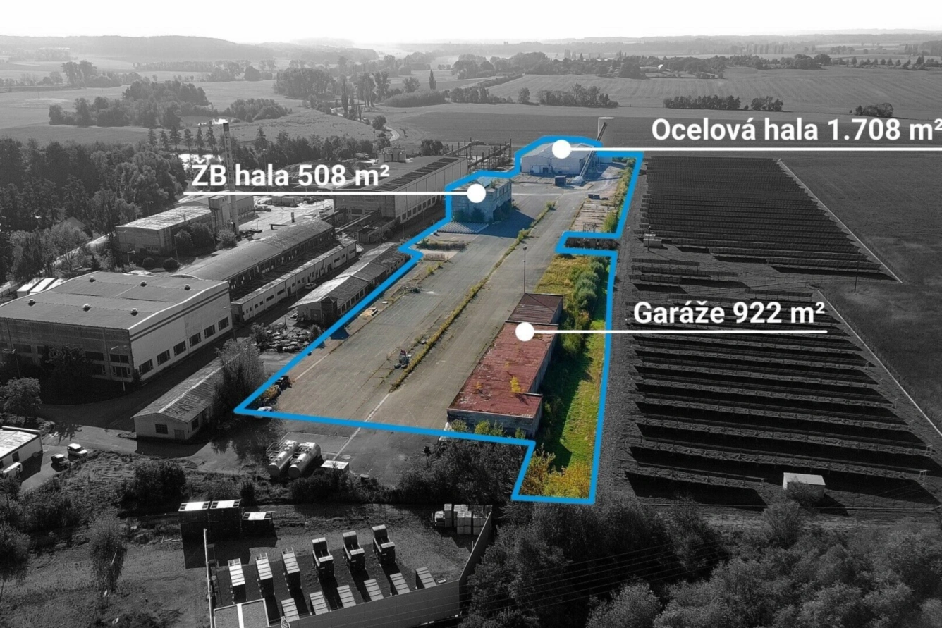V obci Nový Bydžov prodáme část průmyslového areálu zahrnující zpevněný pozemek o celkové výměře 23.838 m2, dvě haly a objekt garáží.