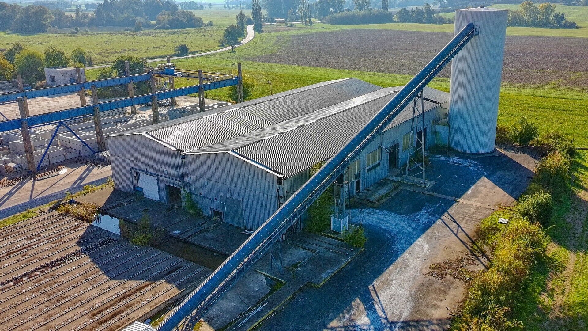 Poznámka: Dopravník a silo u dvoulodní haly zachycené na fotografiích nejsou předmětem prodeje.