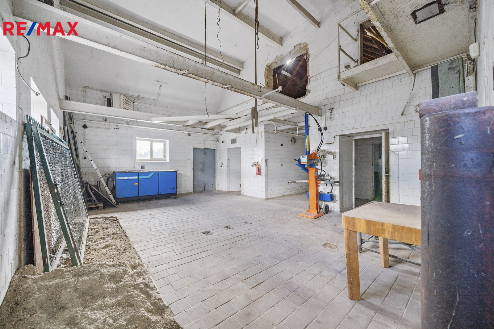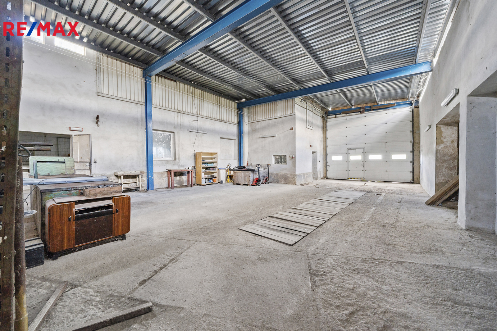 Dvoupodlažní budova s celkovou užitnou plochou 1 220 m², je aktuálně v 1. nadzemním podlaží dispozičně rozdělena na prostory výrobní, skladové a administrativní s odpovídajícím sociálním zázemím. Dominantním prostorem je 148 m² veliká dílna s výsuvnými vraty, která byla využívána pro servisování nákladních automobilů. K dispozici jsou rovněž 2 dvojgaráže.