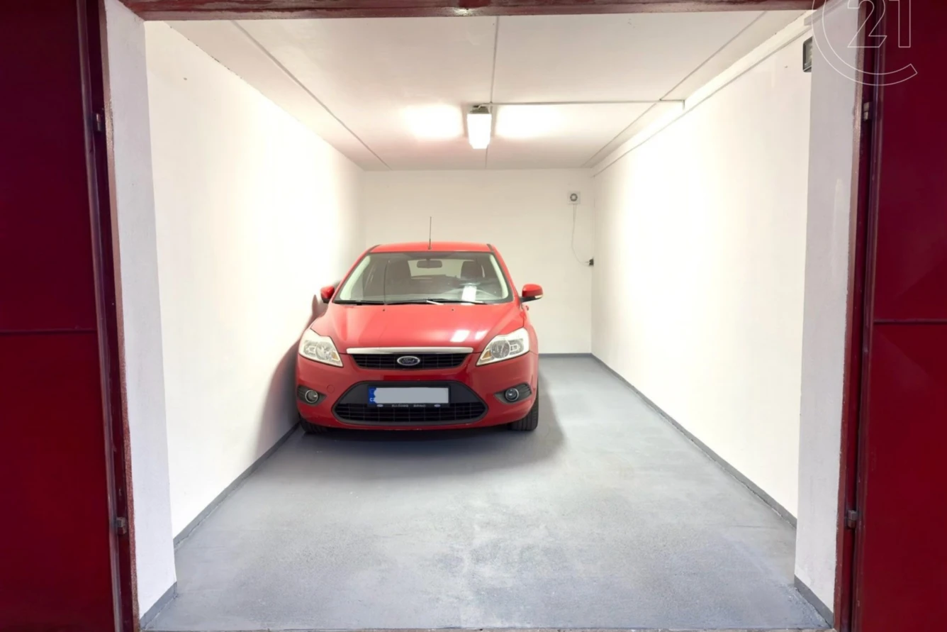 Garáž o výměře 18 m2. Garážová vrata samotná mají na šířku 2,43 m a 2,20 m na výšku. Elektrický proud zaveden, společný elektroměr, zásuvka 230V, ventilátor k odvětrávání garáže. Pohodlný a bezproblémový příjezd přímo z hlavní silnice. Parkovací dům má samostatný vjezd a výjezd přes automaticky otevíratelná vrata na dálkové ovládaní. Přístup mají pouze majitelé garáží.