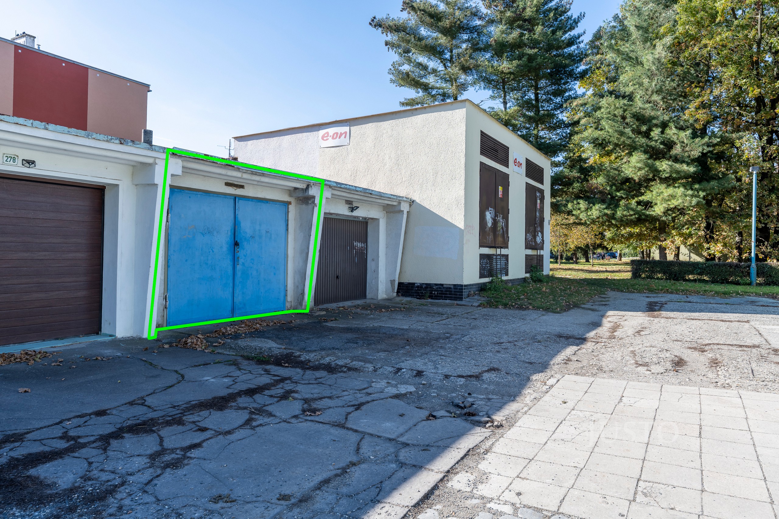 Vnitřní délka garáže je 635 cm, vnitřní šířka garáže je 315 cm.