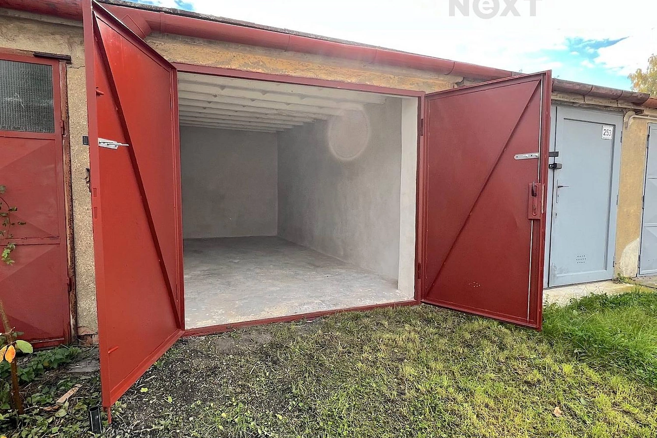 Železná vrata jsou nově natřená a dostatečně zabezpečená. Elektřina je momentálně napojena na sousední garáž, proto nebude problém její snadné přivedení i do této garáže.