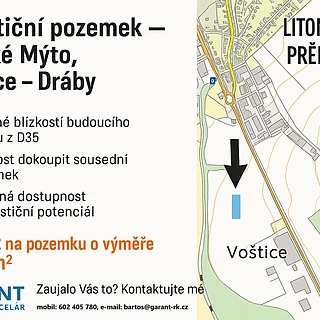 Nabízíme Vám ke koupi pozemek, který se nachází na okraji města Vysoké Mýto, směr Litomyšl lokalita Voštice - Dráby. Jedná se o mírně svažitý pozemek...