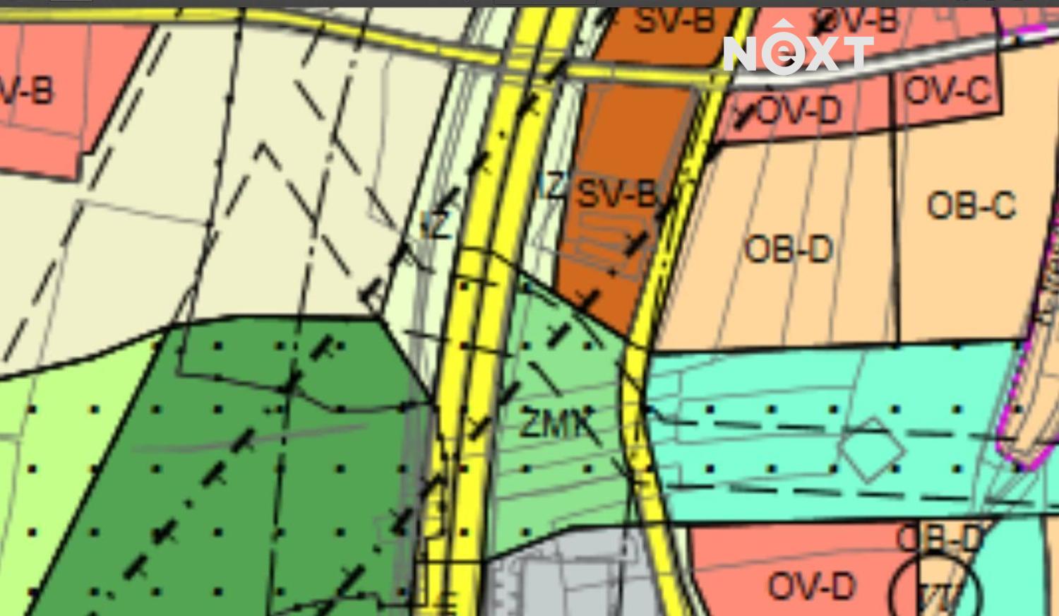 SV – všeobecně smíšené území (cca 1 800 m²) – umožňuje polyfunkční výstavbu (bydlení, administrativa, služby).