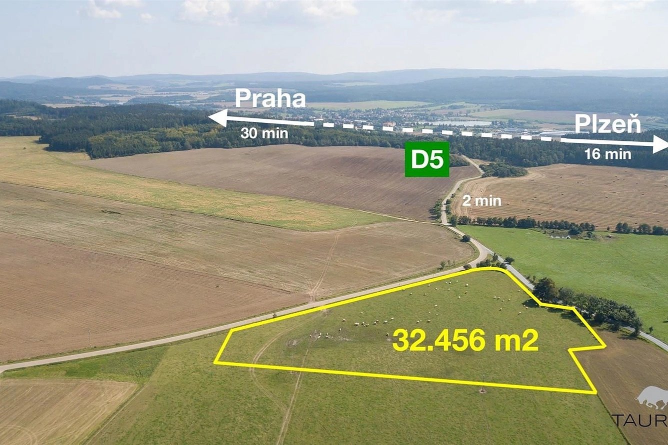 Představujeme k prodeji pozemek o výměře 32.456 m2 u obce Těškov na Rokycansku 2 minuty jízdy od D5.