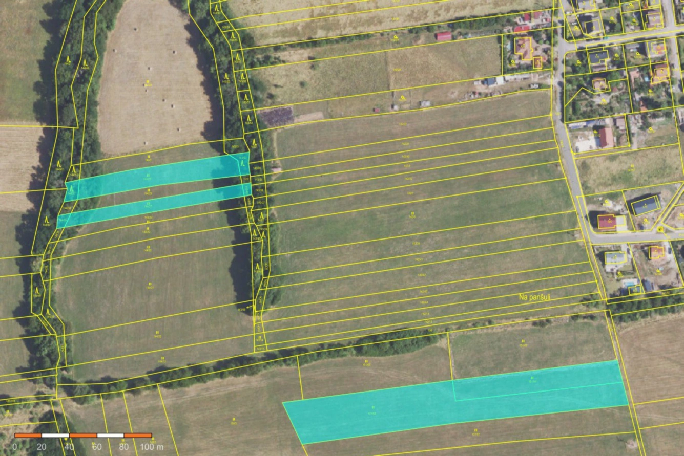 Jedná se o podíly ve výši id. 1/8 na zatravněných plochách a lesních pozemcích. Pozemky nejsou zemědělsky užívané.