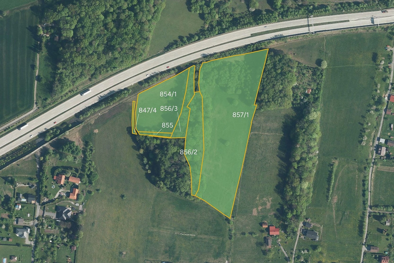Na listu 4043 vlastnictví jsou zapsány parcely č. 847/4, 854/1, 855 a 856/3. Ty mají společnou výměru 7 715 m2 a jsou k prodeji do výlučného vlastnictví. Parcela 854/1 je vedena jako orná půda, ale užívána jako TTP.