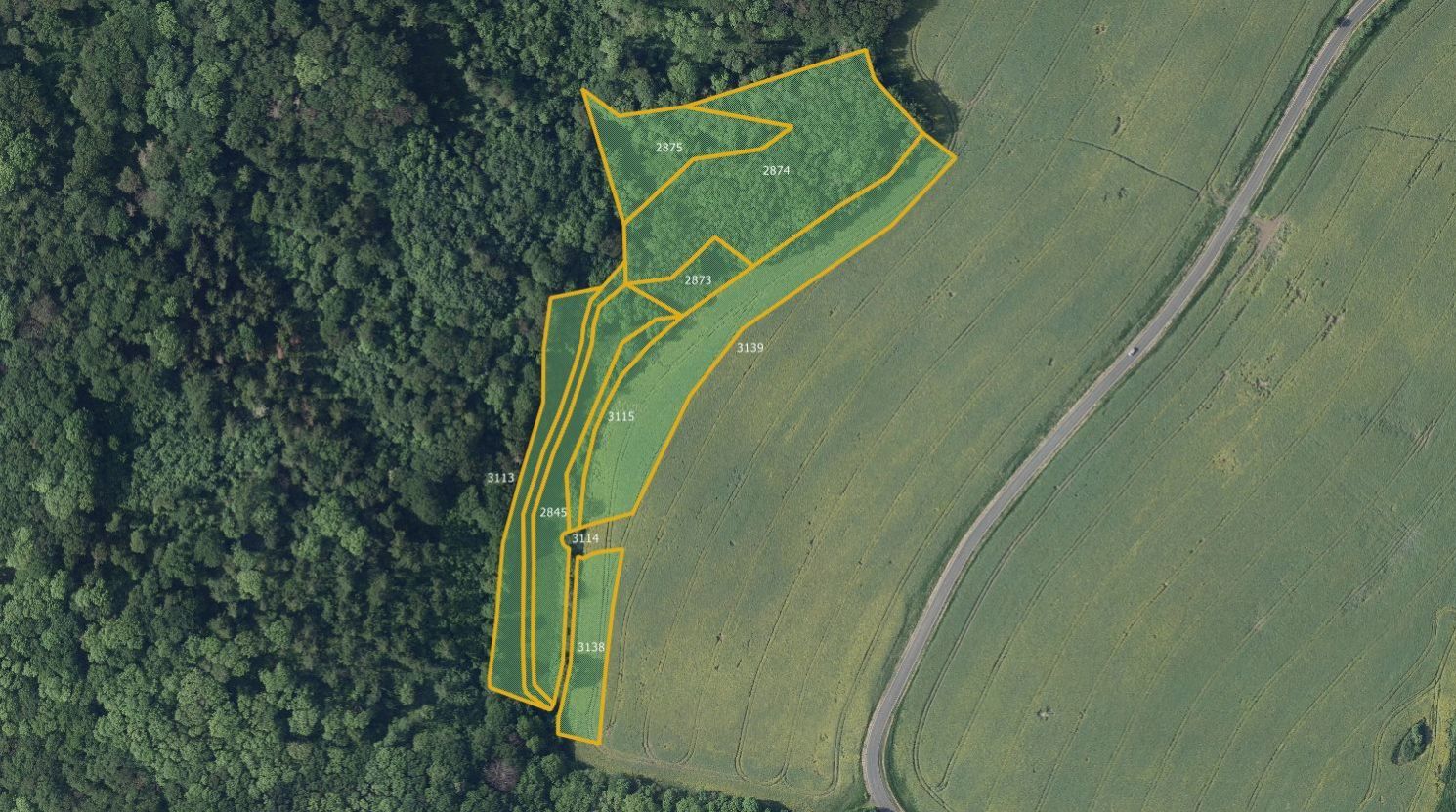Součástí souboru je orná půda o výměře 8 540 m, která sousedí s lesním pozemkem (parcela č. 2874). Takové uspořádání zajišťuje přirozené oddělení pozemků a možnost efektivního využití.