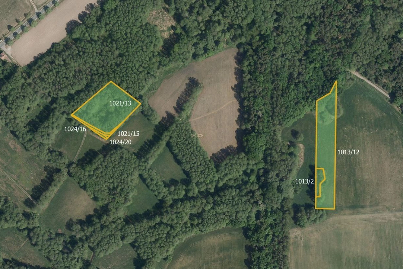 Parcely jsou položeny v rovině a jedná se o trvale travní porost zasahující do lesa. K prodeji je vlastnictví na pozemcích parc. č. 1021/13, 1021/15, 1023/8, 1024/16, 1024/19 a 1024/20 zapsaných na LV 599 a dále pak na pozemcích parc. č. 1013/2, 1013/12, 1765/17, 1800/17 a 1807/17 zapsaných na LV 1549. Oboje ve výše zmíněném katastrálním území.