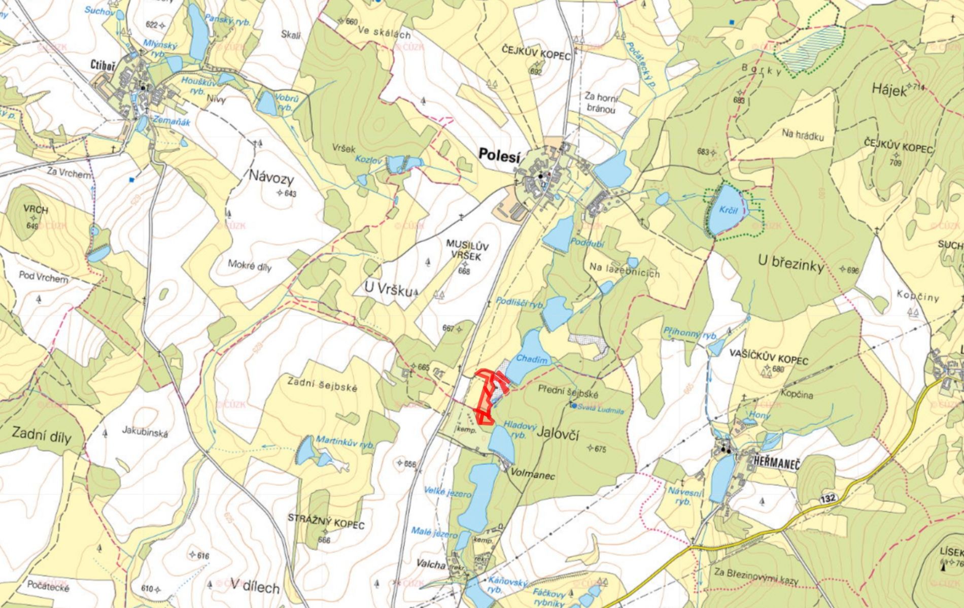 Dále v katastrálním území Polesí u Počátek, LV 158: