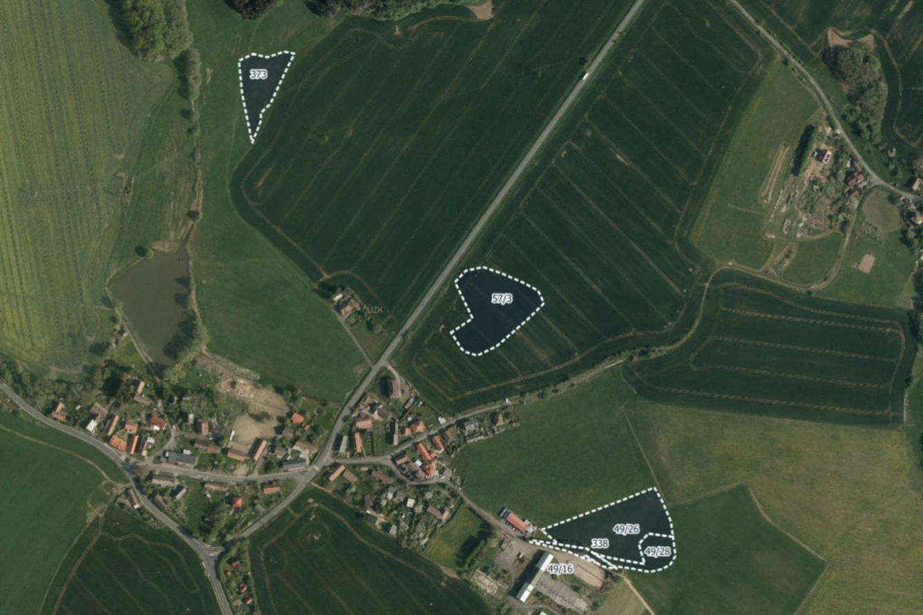 Předmětem prodeje je v KÚ Starý Dvůr vlastnictví půdy na parcelách č. 57/3, 49/26, 49/16, 338 a 49/28 zapsaných na listu vlastnictví 527.