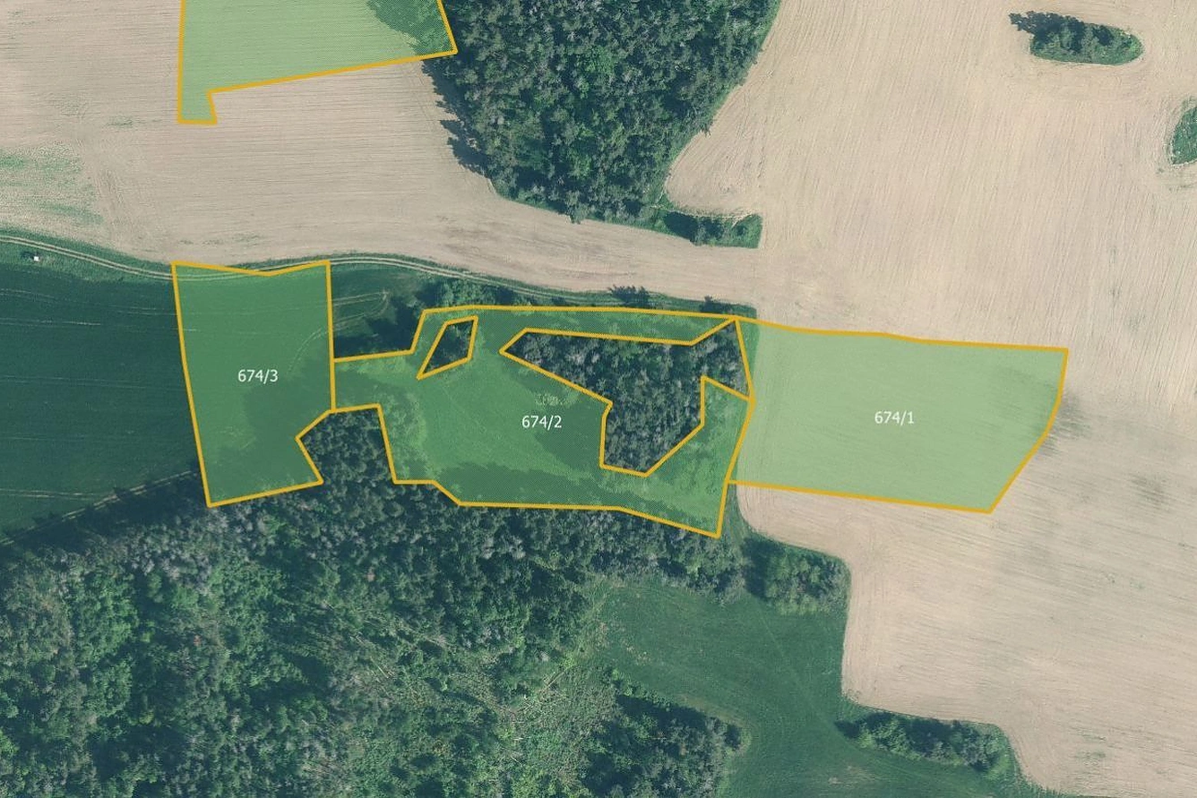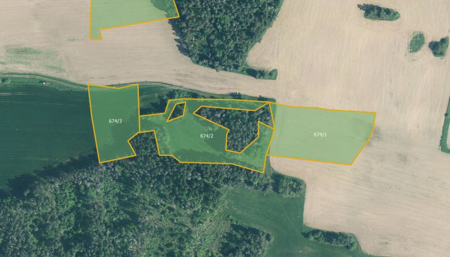 orná půda: parc. č. 674/1, 674/3 celkem 13 567 m