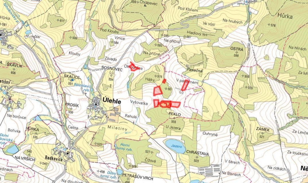 V katastrálním území Úlehle, okres Strakonice, nabízíme k prodeji soubor zemědělských pozemků ve výlučném vlastnictví. Pozemky jsou zapsány na LV č. 482 a jejich celková výměra činí 45 705 m.