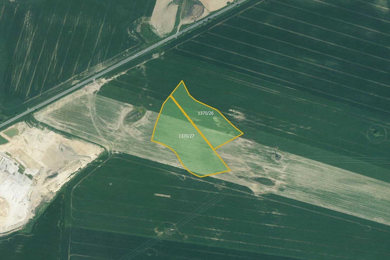 Pozemky mají společnou výměru 37 953 m, z čehož ideální výměra prodeje činí 25 302 m. Zapsány jsou na listu vlastnictví 861 pod čísly parcel 1370/26 a 1370/27.