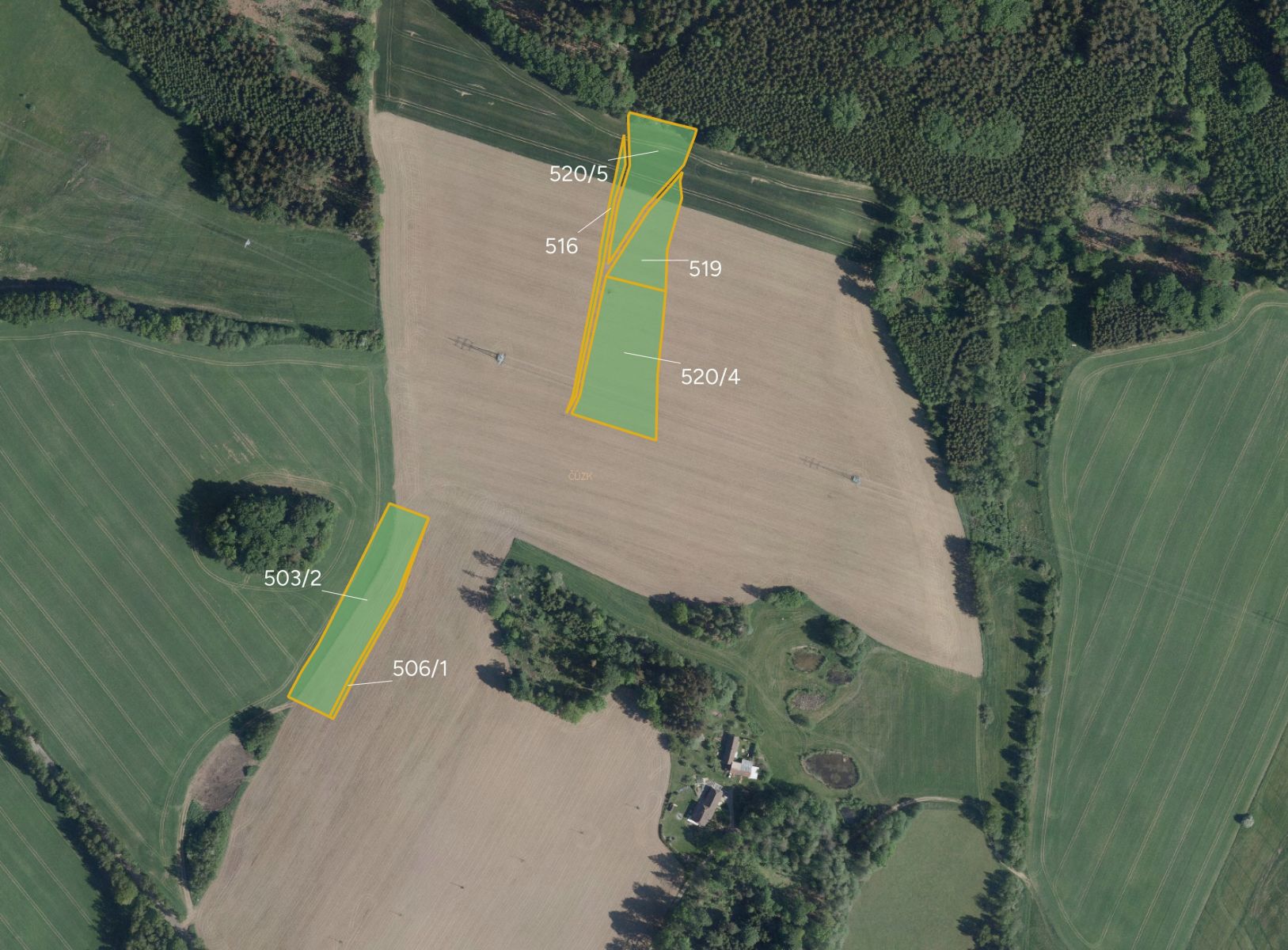Parcelní čísla: 516, 503/2, 506/1, 520/5, 483/3, 519, 520/4