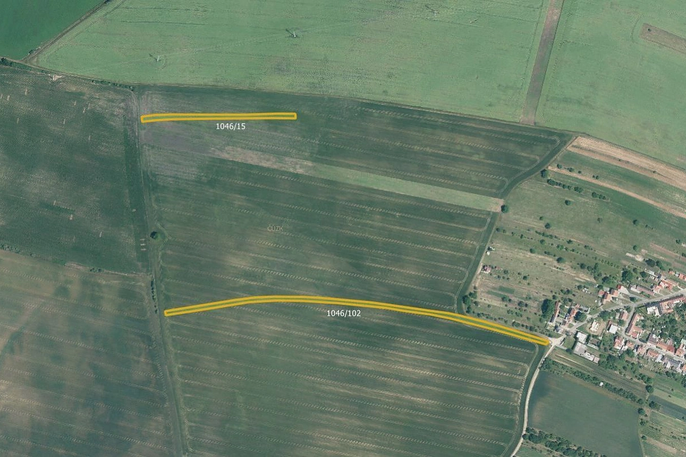 V k. ú. Těmice u Hodonína (LV 685) jsou k prodeji parcely č. 1046/15 a 1046/102 o výměře 6 993 m, vedené jako orná půda.