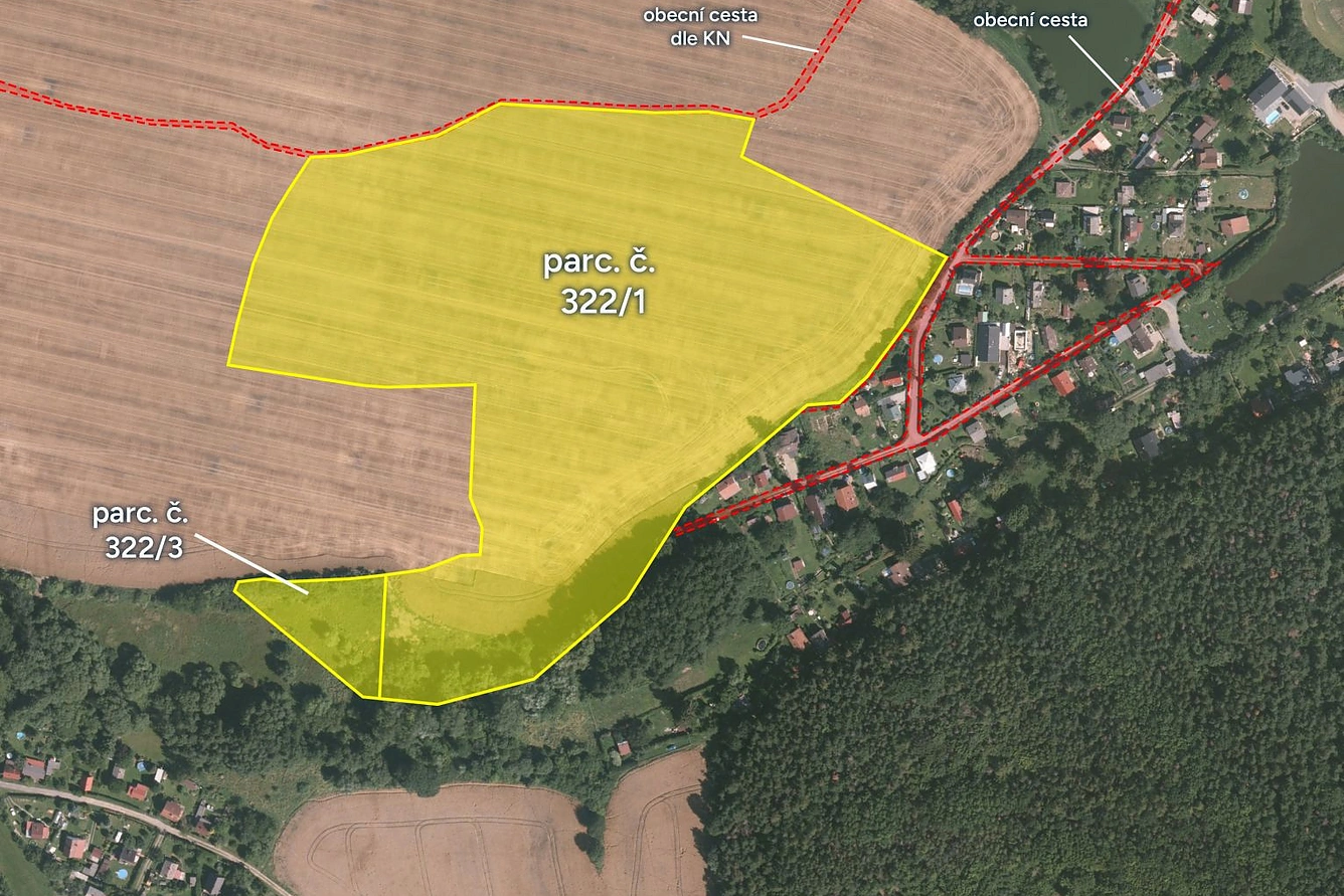 - parcela č. 322/1 o výměře 58 771 m (orná půda, BPEJ 6.17 Kč),