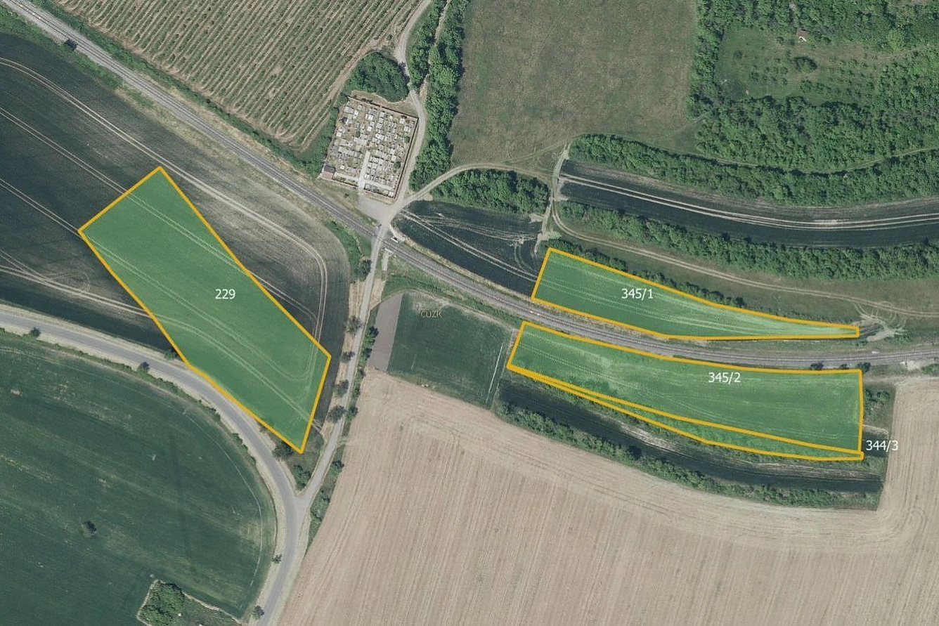 orná půda: 105, 163, 229, 345/1, 345/2, 431, 540, 576, 597/32, 601, 661/12, 685, 689/3, 769 celkem 74 909 m
